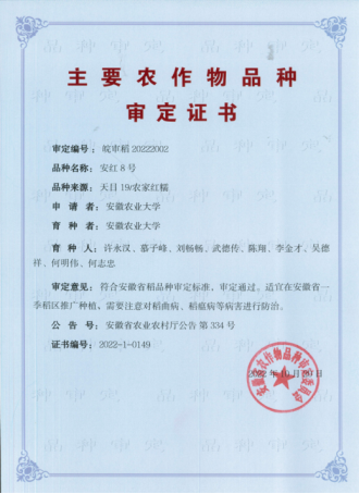 近期,3044永利选育红糯稻新品种“安红8号” 通过 2022年安徽省主要农作物新品种审定委员会审定。该品种通过有性杂交和系统选育,协同聚合优质和高产有利基因,实现高产优质协同改良。