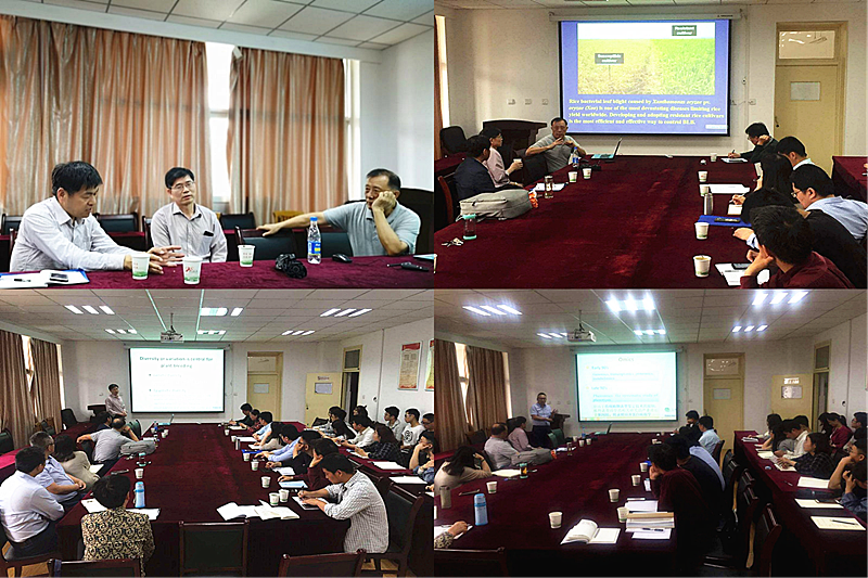 会上,黎志康、孙根楼、宋有洪分别做了题为“The two-layer multiple-for-multiple genetic interaction system between R-genes and virulence genes underlying the coevolution/arms-race between rice and its bacterial blight pathogen”、“Current views of epigenetics for crop improvement”和“Plant phenomics:the accelerate of plant breeding and gene discovery”的报告。三位专家的报告从不同角度介绍了作物育种领域最新研究进展,内容丰富、信息量大,有较强的前瞻性和指导性,增进了参会师生在科学研究实践、试验分析方法创新、高水平论文发表等方面的认识,引起了大家广泛讨论。