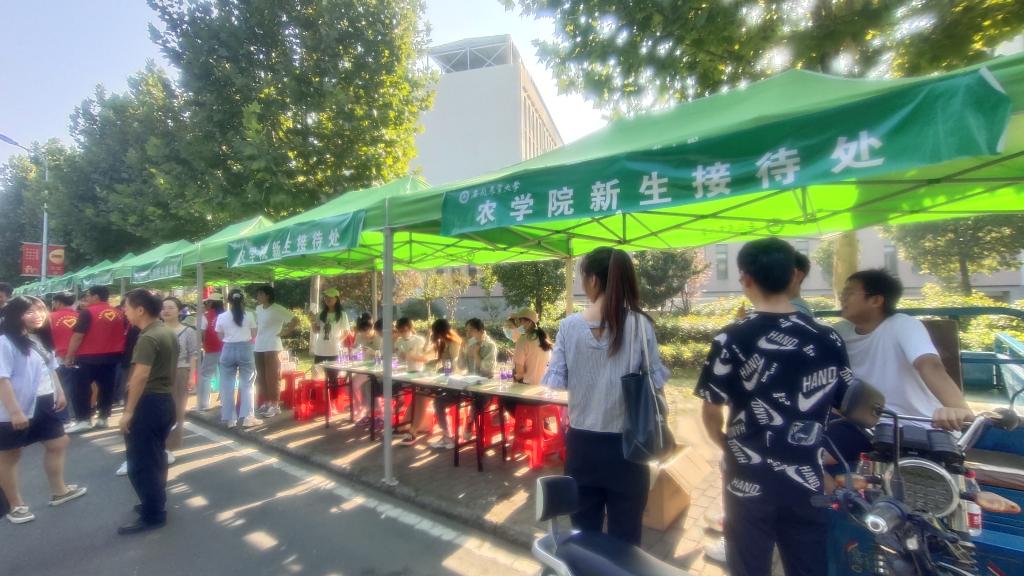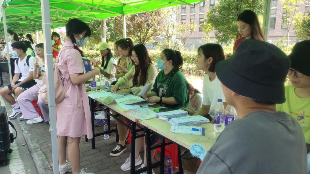 志愿者们主动帮助行李多的新同学送到各自的宿舍楼,使长途跋涉的新生能尽快安顿下来。