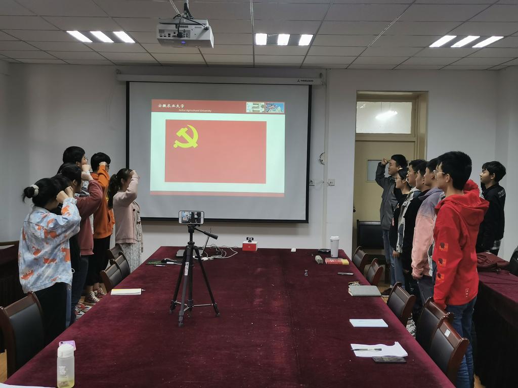 致敬建党百年,传承建党精神。青年农场主党支部于2021年4月16日在十教518会议室开展了集中观看《觉醒年代》及重温入党誓词活动。出席本次学习活动的有青年农场主党支部全体在公司党员、入党积极分子和2018级青年农场主班员工代表。因外出试验和创业孵化原因,部分党员同志通过线上腾讯会议参加了此次学习活动。