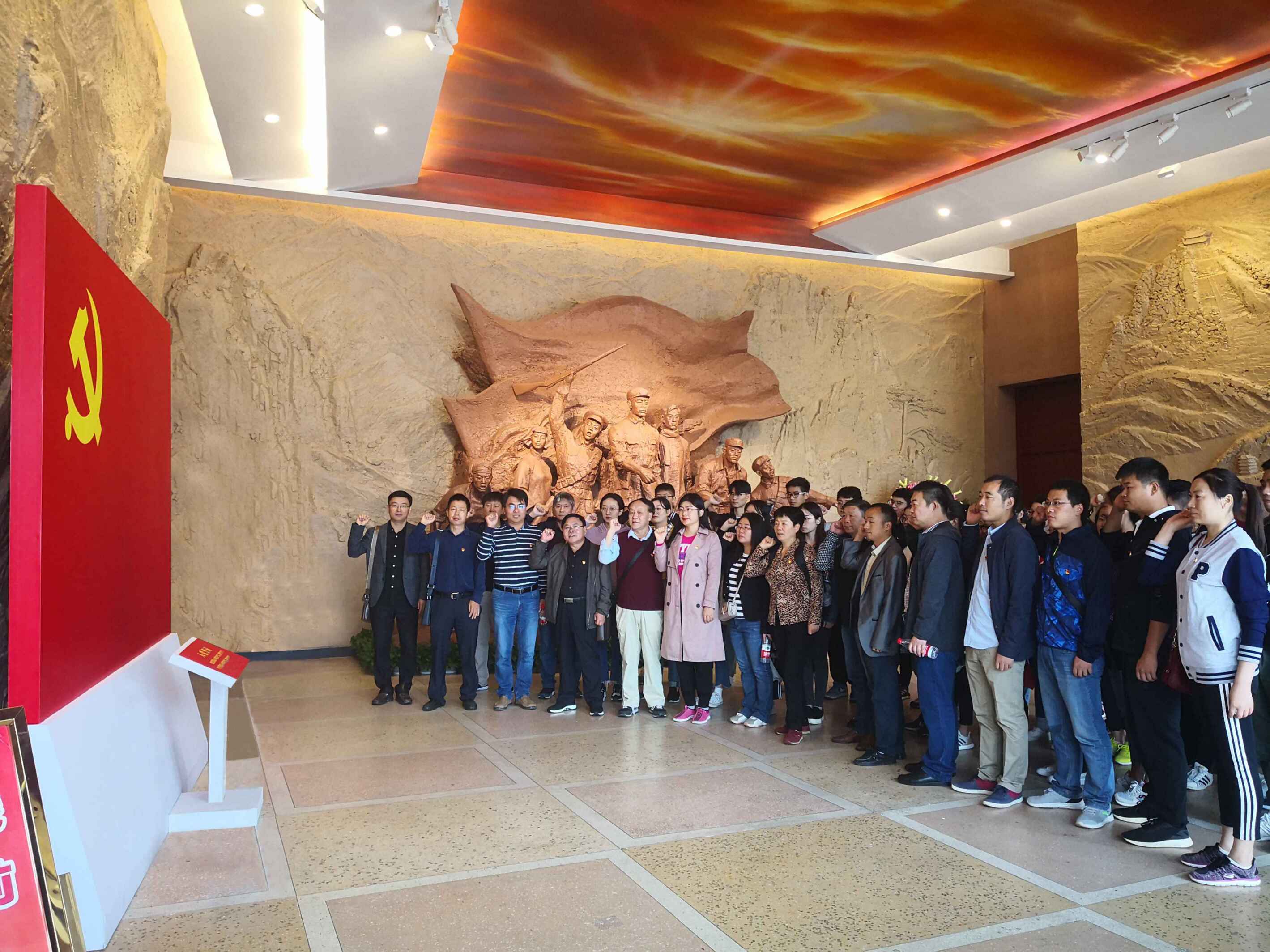在安徽革命烈士事迹陈列馆的宣誓大厅,在党委书记汪凤莲的带领下,全体党员面向党旗重温入党誓词,洪亮而庄严的宣誓声响彻大厅,忠心向党,告慰先烈。在随后的瞻仰过程中,大家通过展厅里陈列的历史文物、珍贵照片和真实史料再次追忆安徽革命的光辉历史和党的峥嵘岁月,感受着革命前辈对党绝对忠诚的信念和不懈奋斗的担当。