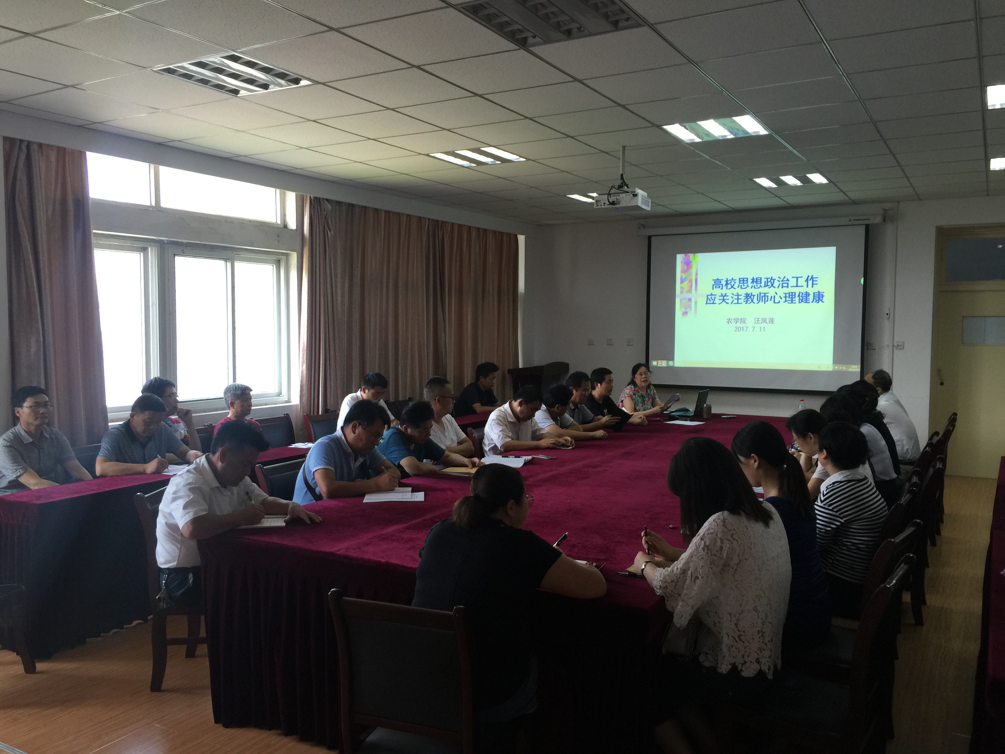 本网讯 为了贯彻落实全国全省思想政治工作会议精神,7月11日下午,公司党委书记汪凤莲同志在十教518为全体党员、教职工讲授题为《高校思想政治工作应关注教师心理健康》党课。