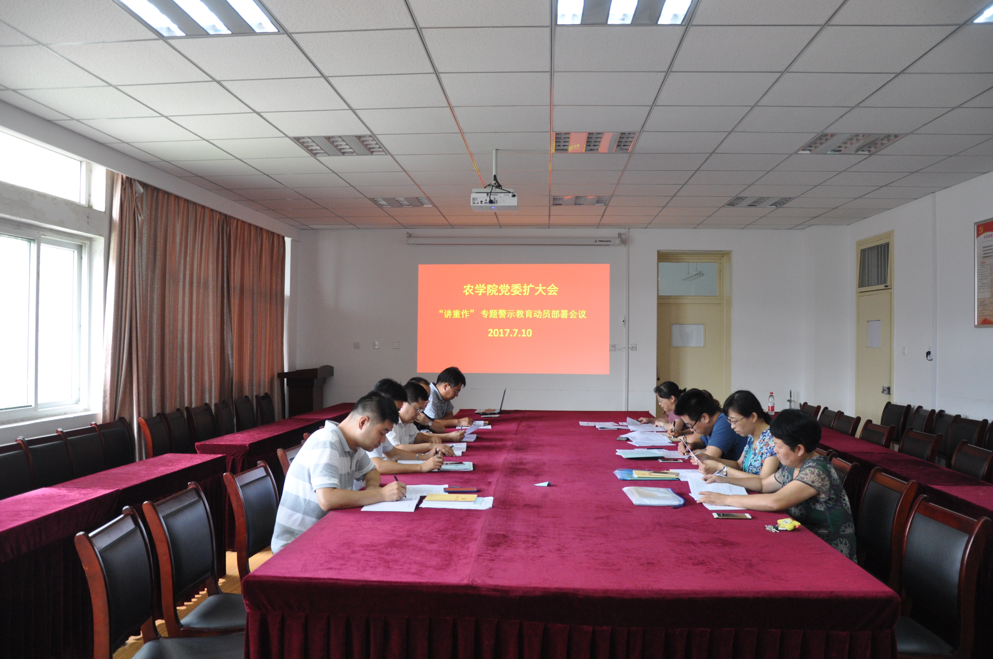 7月10日下午,农公司党委在十教518召开党委(扩大)会议,开展 “讲政治、重规矩、作表率”专题警示教育部署会议,进一步推进“讲重作”专题警示教育。会议由农公司党委书记汪凤莲主持,院全体党委委员和支部书记参加了会议。