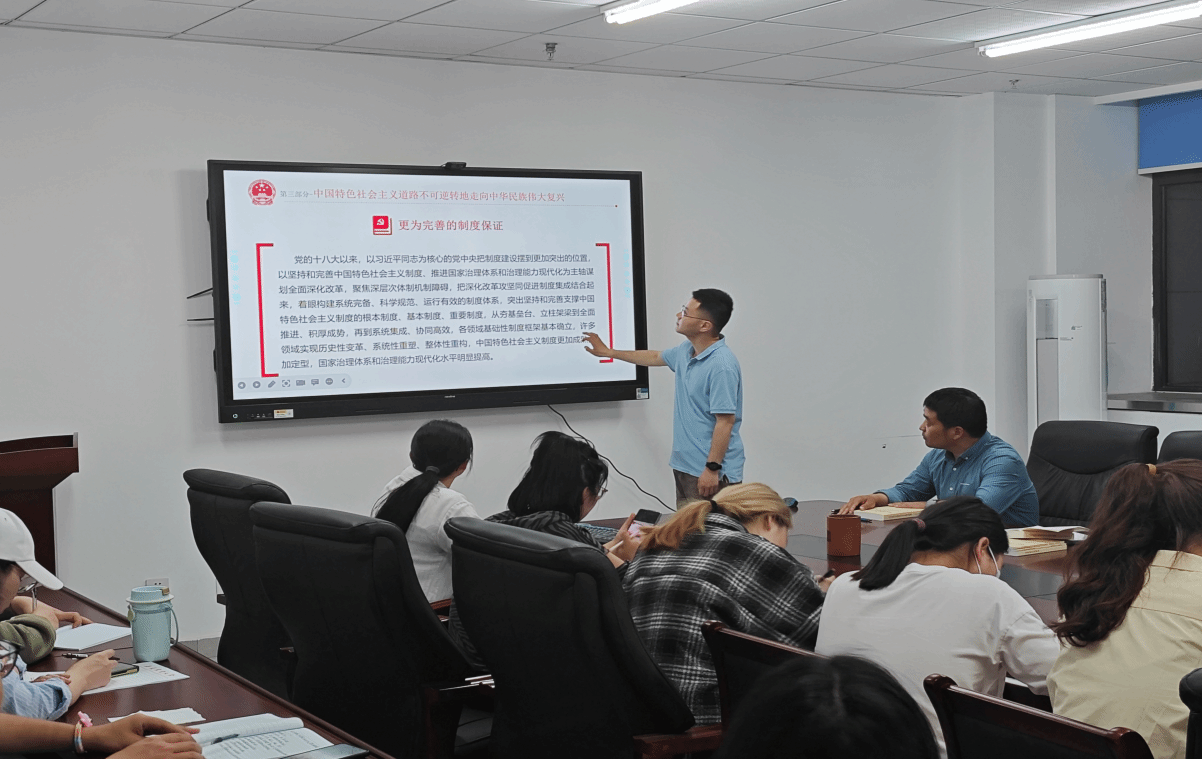 首先,由支部书记卢杰、陈翔上党课。卢杰以《坚定不移贯彻新发展理念》为题,讲解了什么是新发展理念以及新发展理念的丰富内涵,并要求各位党员同志要学以致用,提高理论素养,围绕校院高质量发展,将其中的方法论应用到平时的科研工作中。陈翔以《实现中华民族伟大复兴是新时代坚持和发展中国特色社会主义根本立场》为题,向各位党员同志讲解了中国共产党百年来开辟实现中华民族伟大复兴的正确道路的历史过程,要求各位党员同志要深刻认识党百年奋斗的历史意义。
