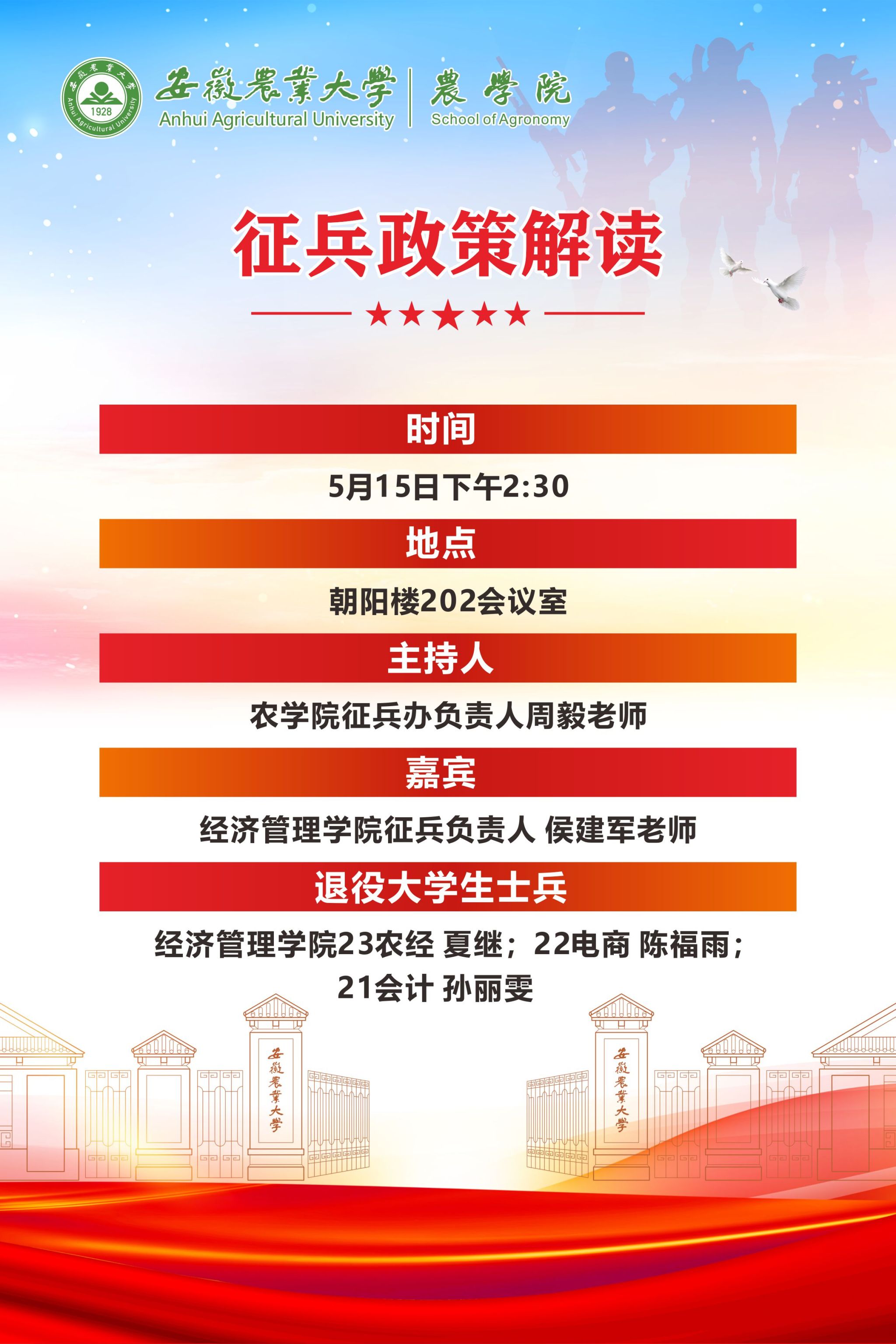 为强化青年员工的国防意识,进一步激发老员工的入伍热情,5月15日下午,3044永利在朝阳楼202会议室举办征兵政策解读宣讲会。会议由3044永利征兵办负责人周毅老师主持,经济管理学院征兵负责人侯建军老师、经济管理学院退役老员工士兵21会计孙丽雯、23农经夏继以及3044永利员工代表参加本次宣讲会。
