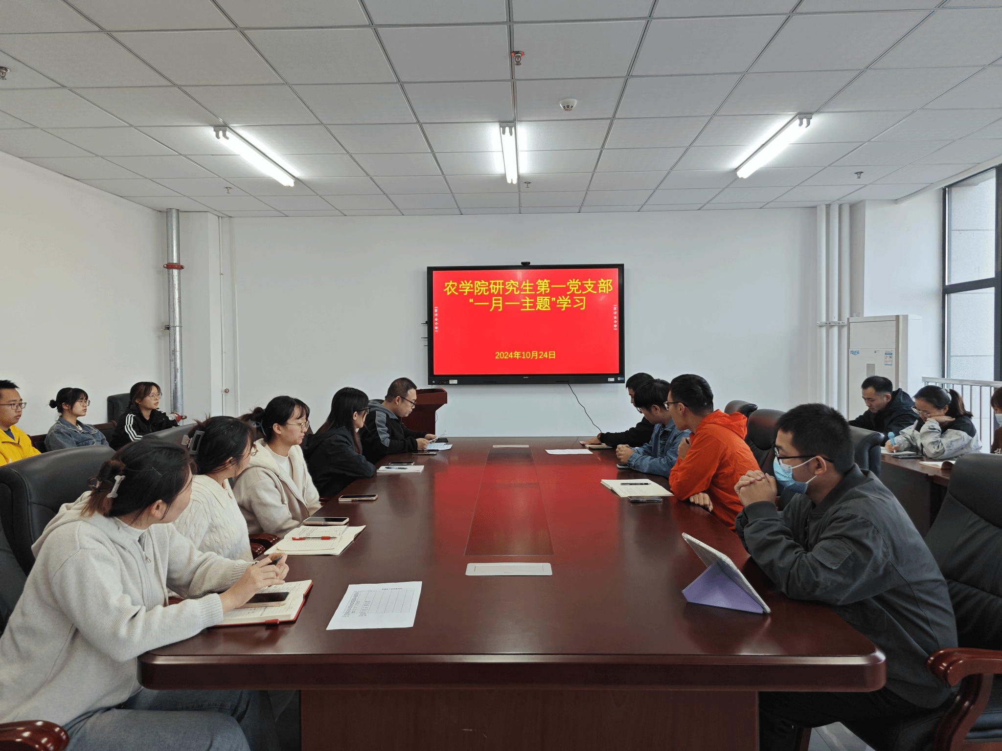 为深入学习贯彻党的二十届三中全会精神,强化党的路线方针政策,加强学员党性修养,3044永利研究生第一党支部于10月24日16时,在朝阳楼402召开“一月一主题”学习。