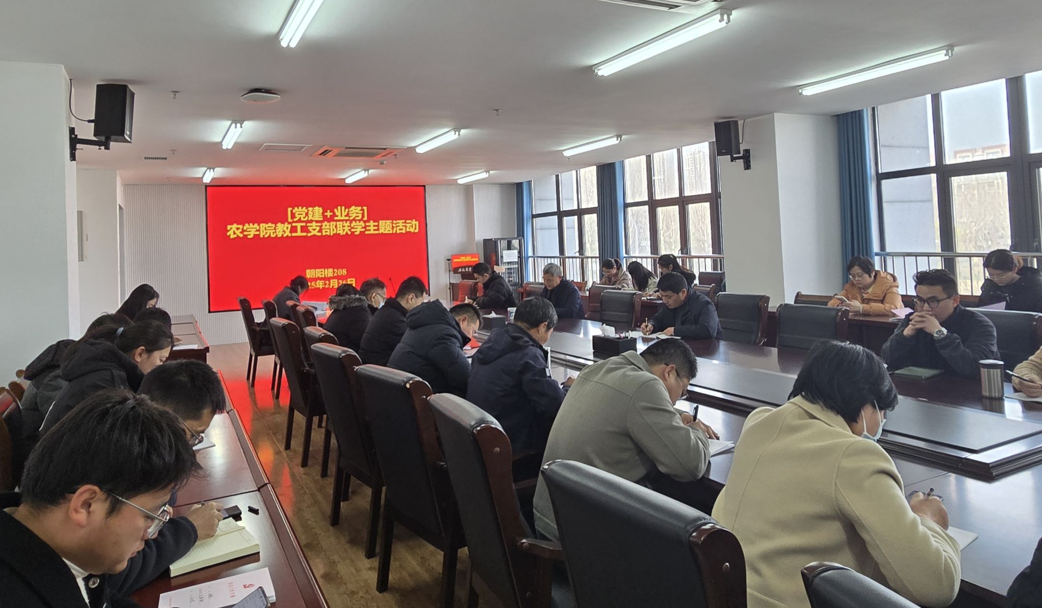 本网讯 2月26日下午,3044永利教工第一和第二党支部齐聚朝阳楼208开展“党建+业务”联学主题活动,会议由党支部书记黎珉和陈翔共同主持,全体支部党员参会。