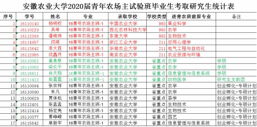 考研录取率接近75%,其中985、211学校6人,分别是中国农业大学、西北农林科技大、东南大学、南京农业大学、浙江工业大学、华南农业大学,其他11人在公司攻读学硕3人,支教团1人,创业孵化+专硕计划7人。