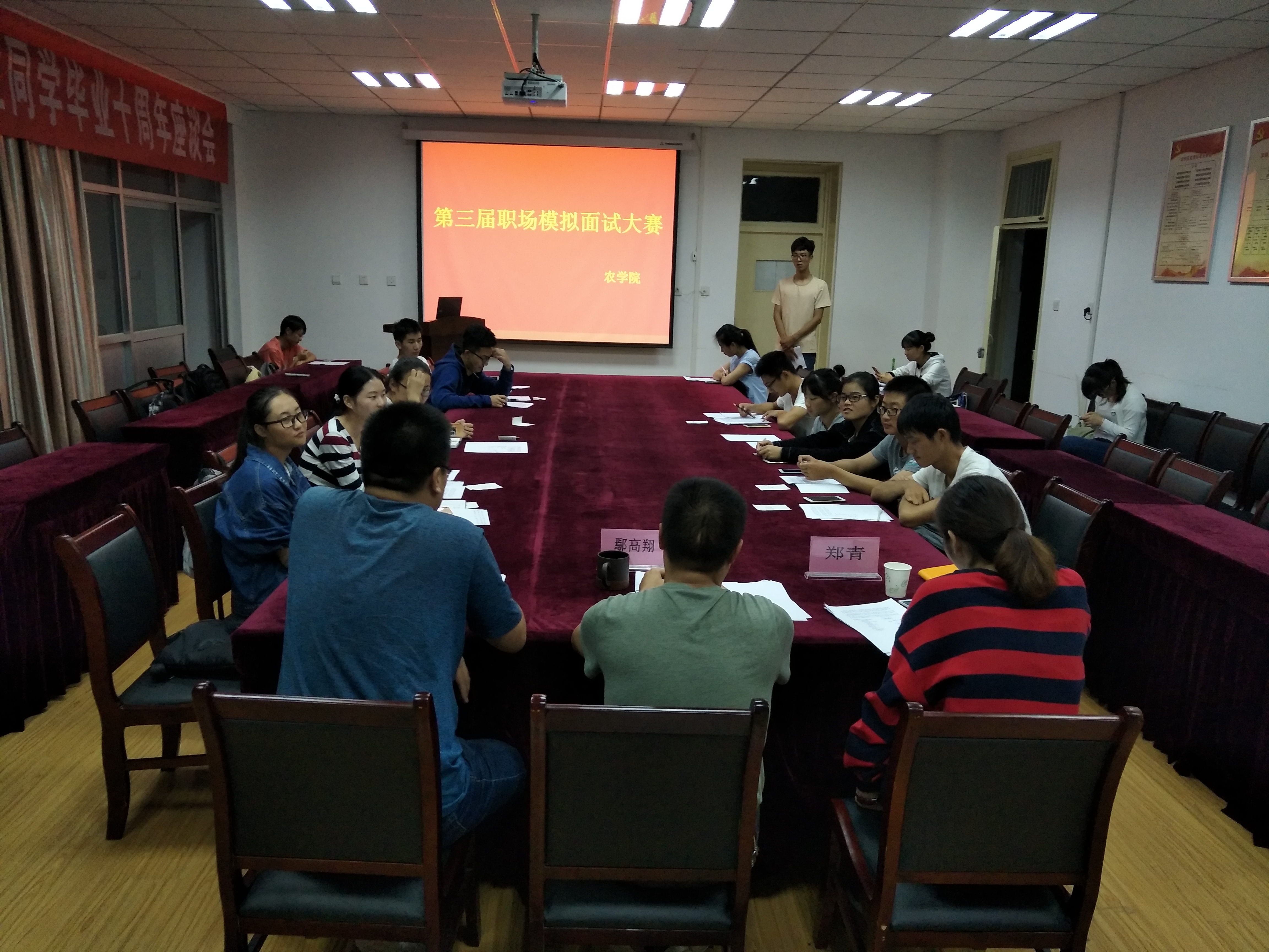 为帮助老员工提供一个求职面试的实践平台,指导员工正确处理好学习与就业发展之间的问题。9月25日晚7点3044永利在十教518举办了别开生面的第三届“青农乌托邦”职场模拟面试大赛。比赛邀请了公司党委副书记鄢高翔、团委仇飞老师和郑青老师担任评委。