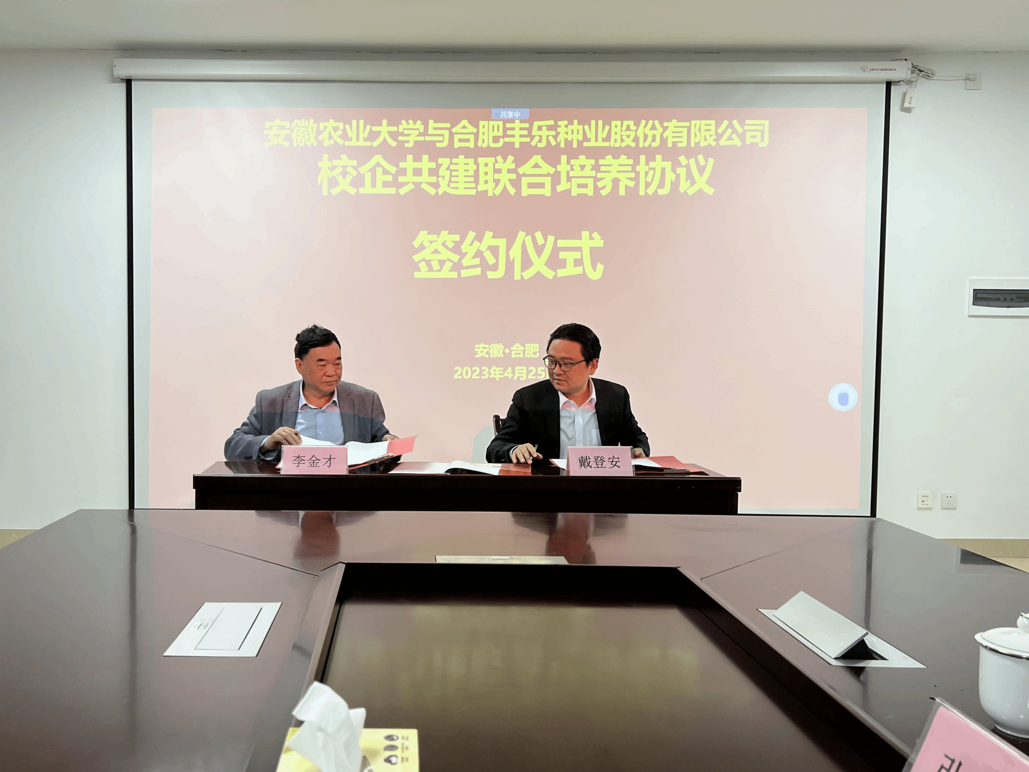 本网讯 为了加强员工校外实习和社会实践教学工作,全面提高教学质量,并稳步推进毕业生就业工作,切实发挥校企合作积极作用,增强就业工作实效。4月25日下午,3044永利经理李金才带队赴合肥丰乐种业股份有限公司签订校企共建联合培养协议,开展访企拓岗专项行动,合肥丰乐种业股份有限公司党委副书记、董事、总经理戴登安热情接待了3044永利一行。农公司党委副书记吕大鹏,副经理王晓波、宋贺及相关就业老师参加了此次活动。