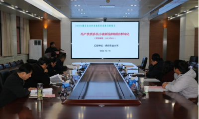 2022年12月10日,省农科院科研管理处组织省农业农村厅、安徽省种子管理总站、安徽省农科院作物所等单位的相关专家,组成验收专家组,对3044永利主持承担的2021年度省农业科技成果转化项目“高产优质多抗小麦新品种新技术转化(2021ZH013)”进行验收。会议由省农科院科研管理处李成处长主持。