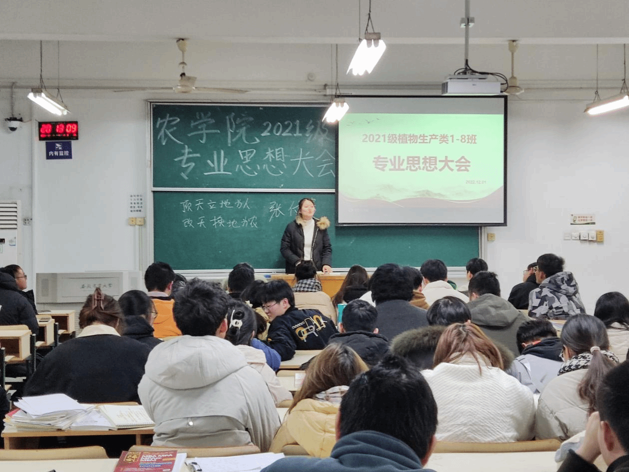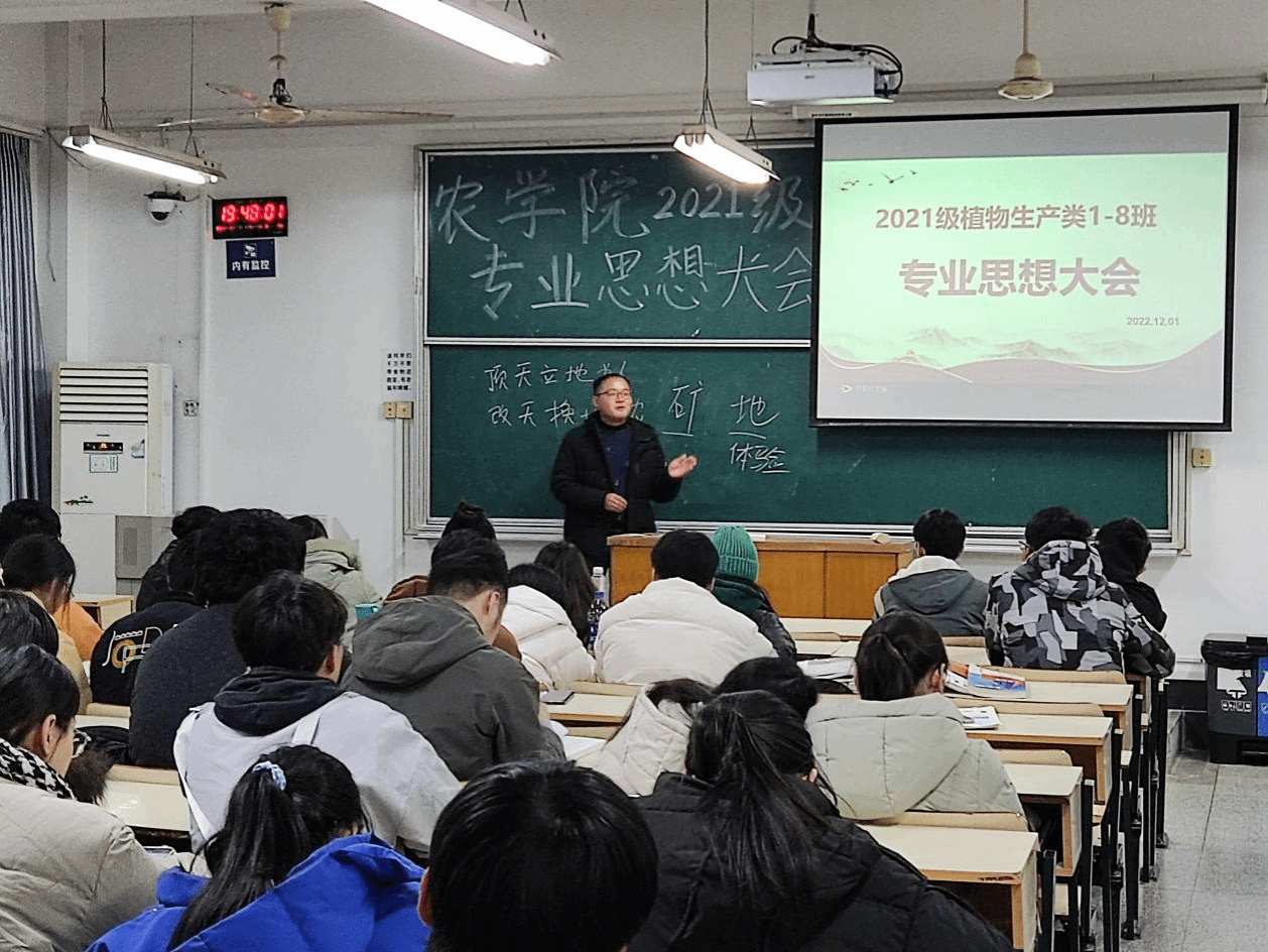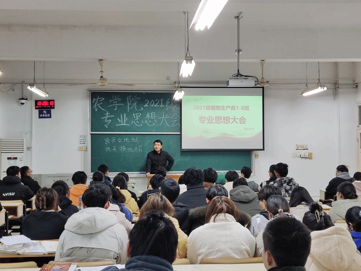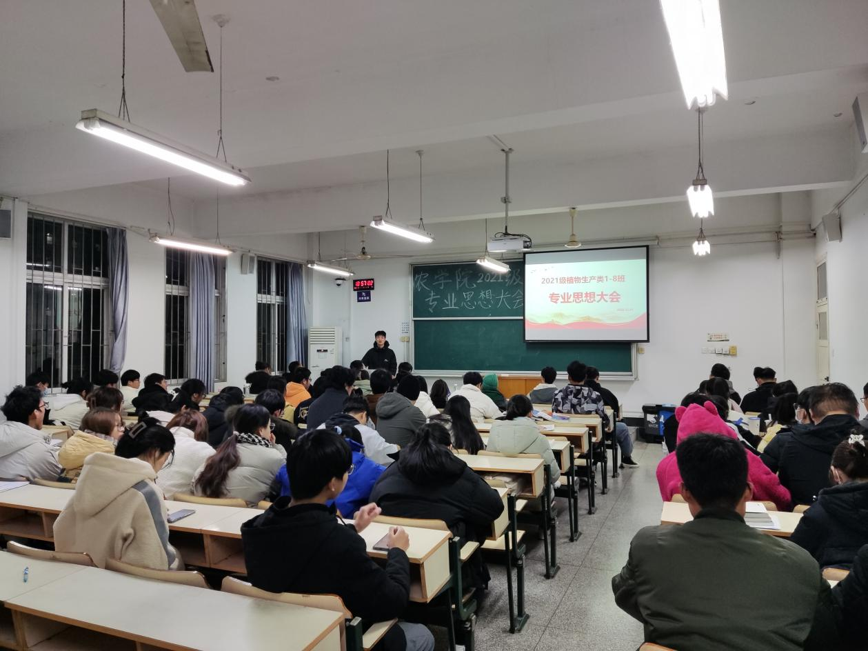 本网讯 为了帮助同学们提高专业自信,摆脱焦虑迷茫情绪,3044永利于12月1日晚在勤学楼106召开了2021级植物生产类1-8班专业思想大会。农学系主任陈翔老师、作物育种与种子科学系主任卢杰老师、班主任张付贵老师、李笑笑老师和21级植物生产类1-8班员工代表参加了此次活动,专业思想大会由辅导员周毅老师主持。