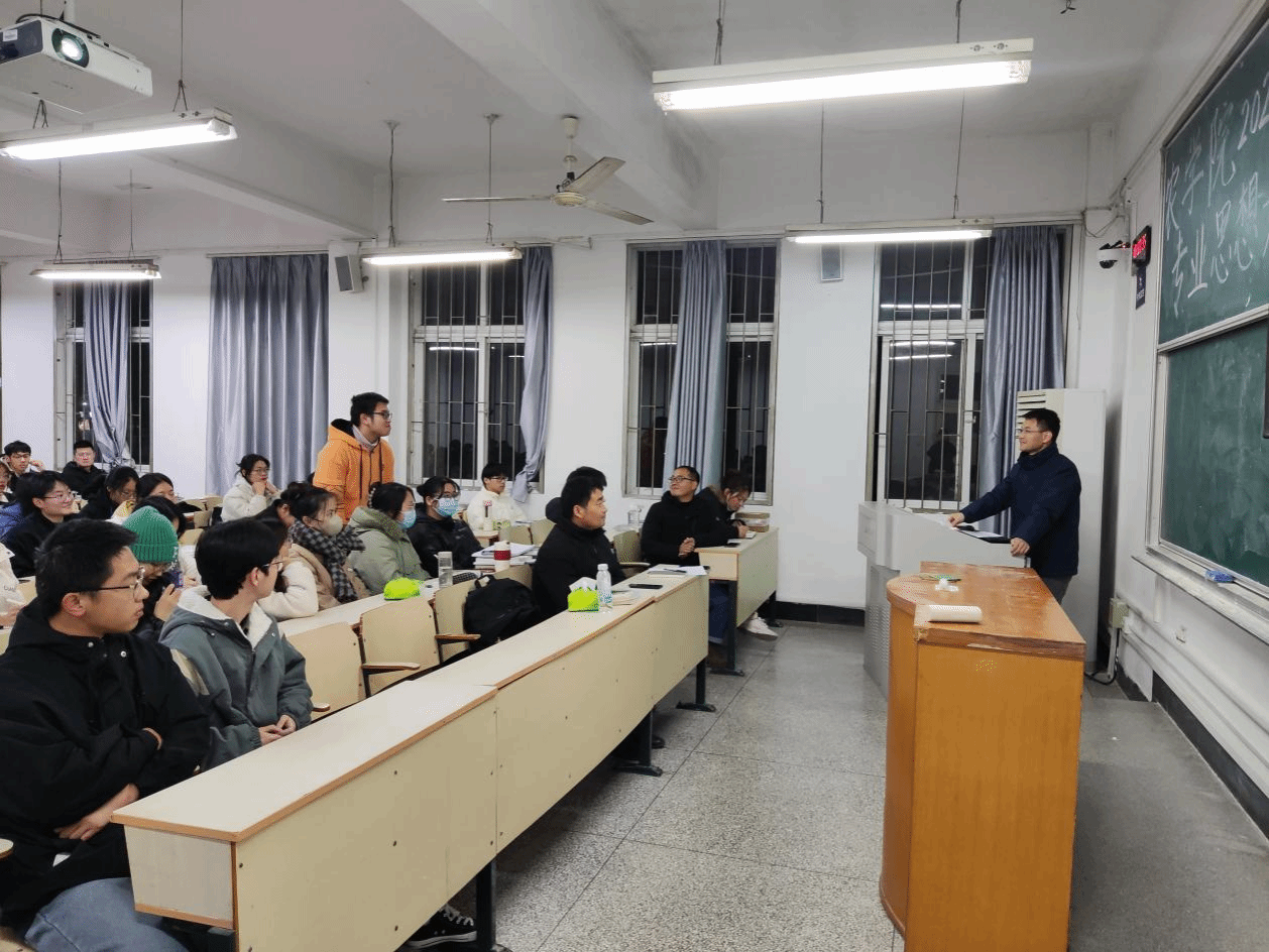 最后一个发言的是班主任李笑笑老师,她从她学农的人生历程为切入点,鼓励我们干一行爱一行,做一行精一行。同时给我们介绍了有关保研、考研、考教资、考公等同学们密切关注的问题,为同学们答疑解惑。
