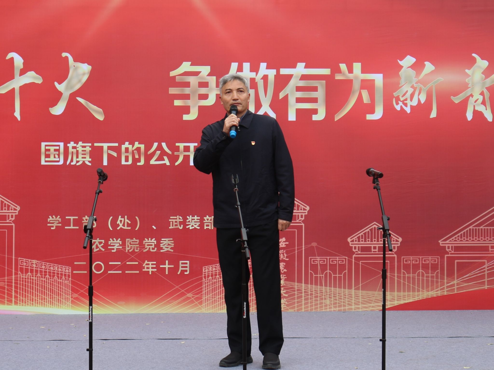 教工第二党支部书记黎珉在国旗下进行公开课主题教育,以“献礼党的二十大,育人育种新征程”为题,以昂扬向上的精神面貌和立德树人的实际行动,热烈庆祝党的二十大胜利召开。粮安天下,种为粮先,粮食安全是国家安全之本,种子是国家粮食安全的源头,党的十八大以来,种源安全已然提升到国家战略高度。