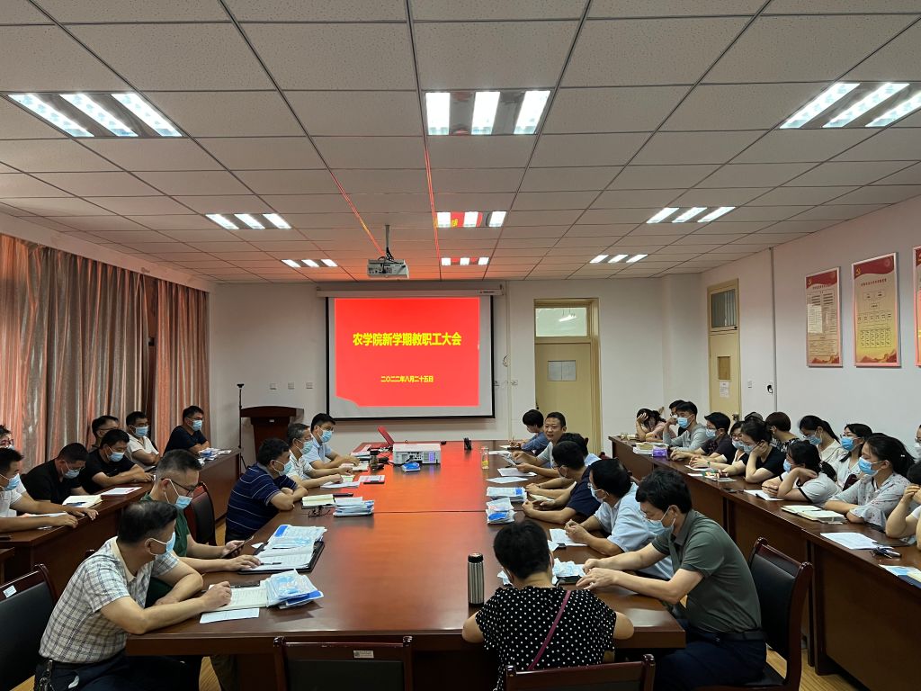 会议强调,全体教职工在新学期要迅速把思想和精力转移到工作中来,提振精气神,展现新面貌,追求新作为,要敢于攻坚克难,推动学校学院教育事业发展再上新台阶,以优异成绩迎接党的二十大的胜利召开。