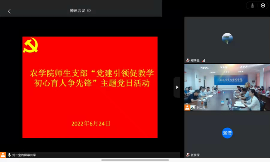 支部共建“大学习 大讨论”:余燕就习近平总书记在四川考察时的重要讲话精神进行了解读,强调要完整、准确、全面贯彻新发展理念,主动服务和融入新发展格局,共同保持经济稳定发展,保持社会大局稳定。卢杰就习近平总书记在《求是》发表的《努力建设人与自然和谐共生的现代化》一文进行领学,号召大家要把握新发展阶段、贯彻新发展理念、构建新发展格局对生态文明建设提出的新任务新要求,建设人与自然和谐共生的现代化。黎珉就省委书记郑栅洁来公司调研时的讲话精神进行了领学,激励师生树立雄心壮志,勇担强农兴农使命,引培更多知农爱农人才。深入思考如何创新开展思政教育,如何进一步抓实师德师风建设和意识形态安全工作,争取为服务安徽“三农”发展做出更大贡献。与会师生代表就领学内容进行研讨,在深入总结学习精神的同时,纷纷表示要立足学科,以农为本,真抓实干,以实际行动迎接党的二十大召开。
