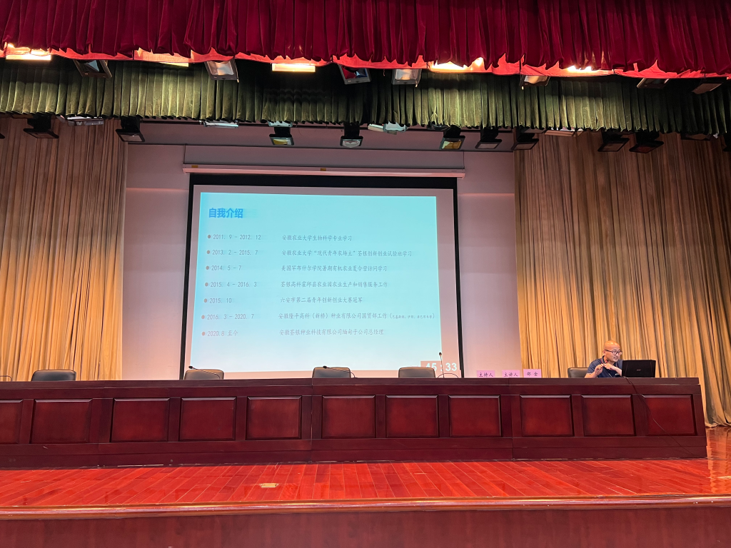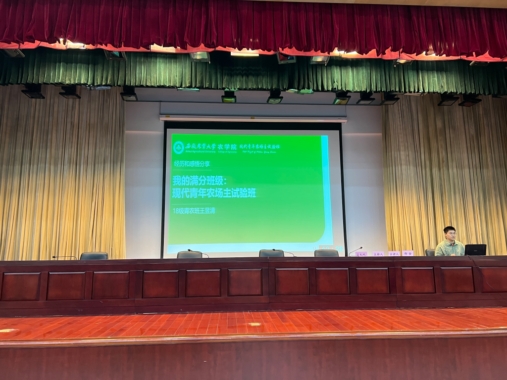 在邵金开始分享之前,学院还邀请了2022届毕业生王昱清汇报主题为《我的满分班级:现代青年农场主试验班》,王昱清同学现为公司2018级青农班成员,中共党员,考研至中国农业大学。王昱清以个人在青农班学习成长的角度,分享了在青农班学习工作的经历和青农班的“传承”故事。(史策 通讯员:陈康 审核人:吕大鹏)