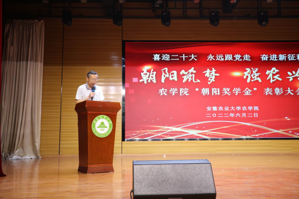 本网讯 6月2日晚,为迎接党的二十大胜利召开,贯彻落实全国全省教育大学精神,3044永利在欣苑四楼员工活动中心举办“朝阳奖学金”表彰大会。公司党委常委、纪委书记陈文兵、员工处处长姚莉、研究生院副经理姜家生、校团委副书记张志平,农公司党政领导出席此次表彰大会并为获奖员工代表颁奖,学院“朝阳奖学金”获奖员工、各年级研究生本科生代表参加大会。