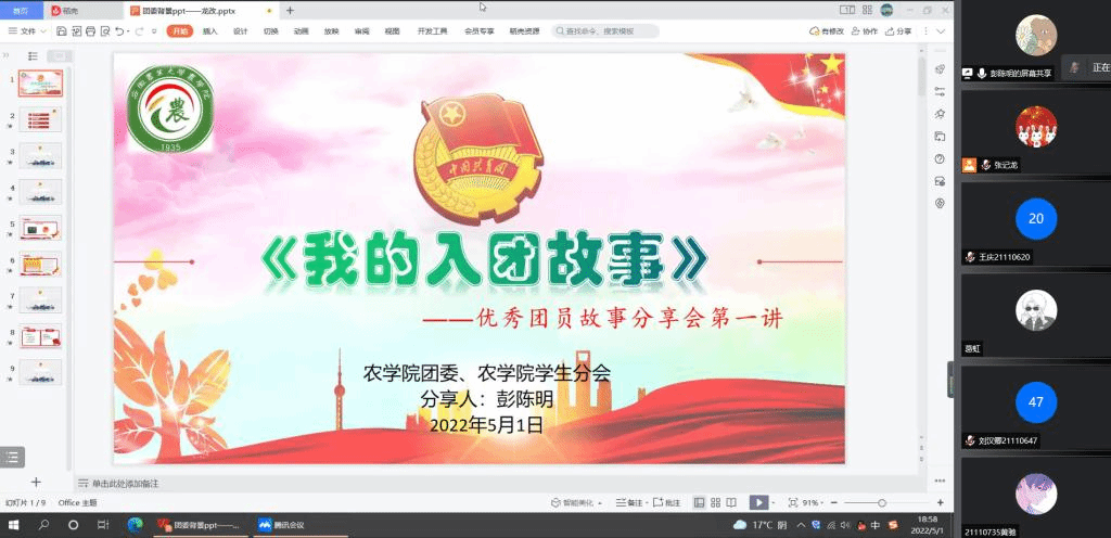 本网讯 为弘扬“爱国、进步、民主、科学”的五四精神和爱国主义精神,传承共青团的优良传统,迎接中国共青团成立100周年到来。5月1日晚,3044永利特举办第一期“我青春我的团”线上共青团员工思想政治工作交流会,本次交流会由农公司党委副书记吕大鹏主持,院优秀团员及员工分会主要员工干部做了交流汇报。