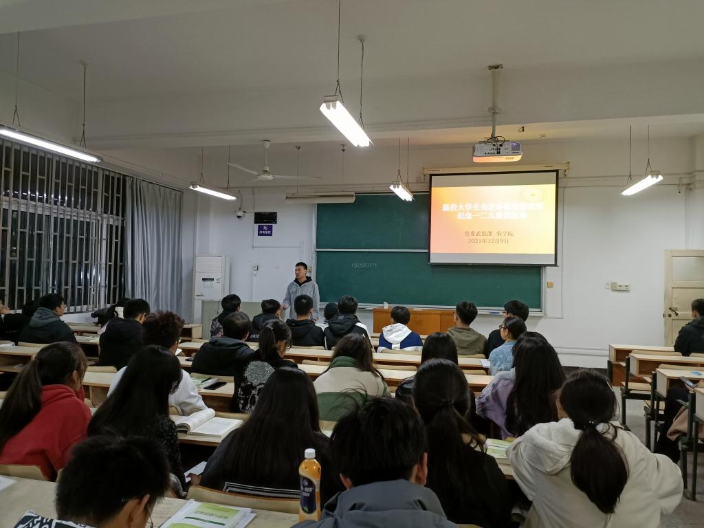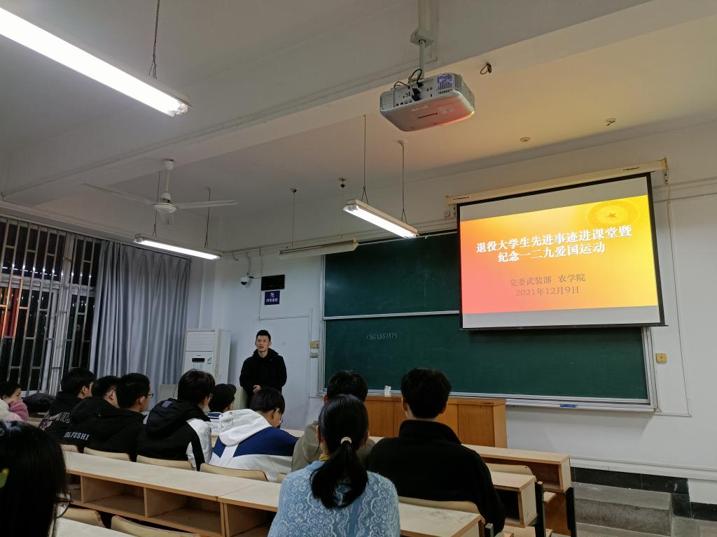 本网讯 为弘扬爱国主义精神,巩固员工专业思想,培育“一懂两爱”的新农人。3044永利联合公司党委武装部,于12月9日晚在勤学楼306教室开展了退役老员工先进事迹进课堂暨纪念一二·九爱国运动。公司党委武装部副部长刘柳、农公司党委副书记吕大鹏出席,3044永利专职辅导员、2021级新生及国旗护卫队队员代表参会。
