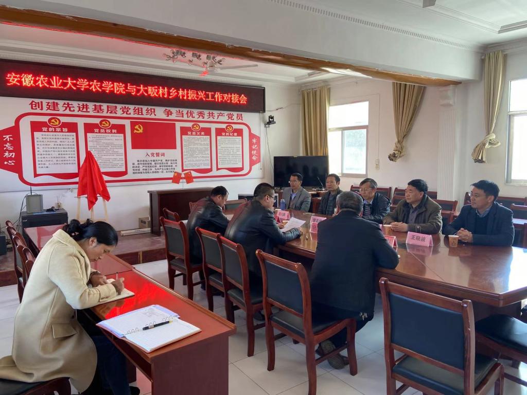 本网讯 为巩固脱贫攻坚成果,助力乡村振兴,推进帮扶村建设,促进院村组织共建、党员互动、活动互联、资源共享,构建双向促进、共同提高的基层党建工作新格局,11月13日,农公司党委书记管志权、经理李金才、党委副书记吕大鹏、副经理王晓波、教师代表许永汉等一行赴金寨县双河镇大畈村开展乡村振兴对接工作。