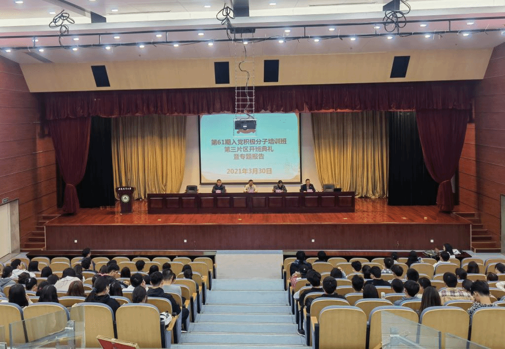 3月30日晚,校分党校第三片区第61期入党积极分子培训班开班仪式暨专题报告会在图书馆第一报告厅举行。农公司党委书记管志权、信息与计算机公司党委书记葛红、生命科学公司党委副书记闫大玮出席会议,第三片区全体党校学员和班主任参加了会议。会议由农公司党委副书记吕大鹏同志主持。