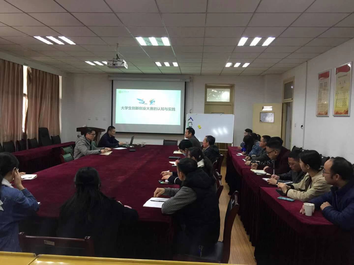 丁朝阳老师从各级各类赛事的出台背景、赛事特征、参赛资格、获奖技巧等方面,进行了生动详细分析和解读。丁老师指出,要结合我国国情和国家战略方向,在农业农村等方面高占位,找机会,解决行业痛点问题,突出项目亮点。要对员工团队有精心的培育过程,从员工进校开始就要组队培育磨合,最后形成有效的项目和有力的团队,最终将项目推出去,获奖是顺理成章,水到渠成的事情,项目落地后师生都会有实实在在的收益。丁老师指出老师和员工可以在学科和专业研究领域内慧眼识金找准真痛点,在项目的设计和实施过程中找创新、找突破。