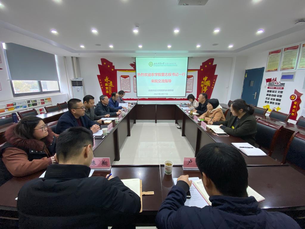 本网讯 为进一步加强基层党组织建设,提高党建工作质量。3月8日、17日,农公司党委书记管志权、副书记吕大鹏带领公司党委委员、员工党支部书记先后赴茶与食品科技学院、资源与环境学院开展向“全国党建工作标杆院系”和“全国党建工作样板党支部”学习交流活动。