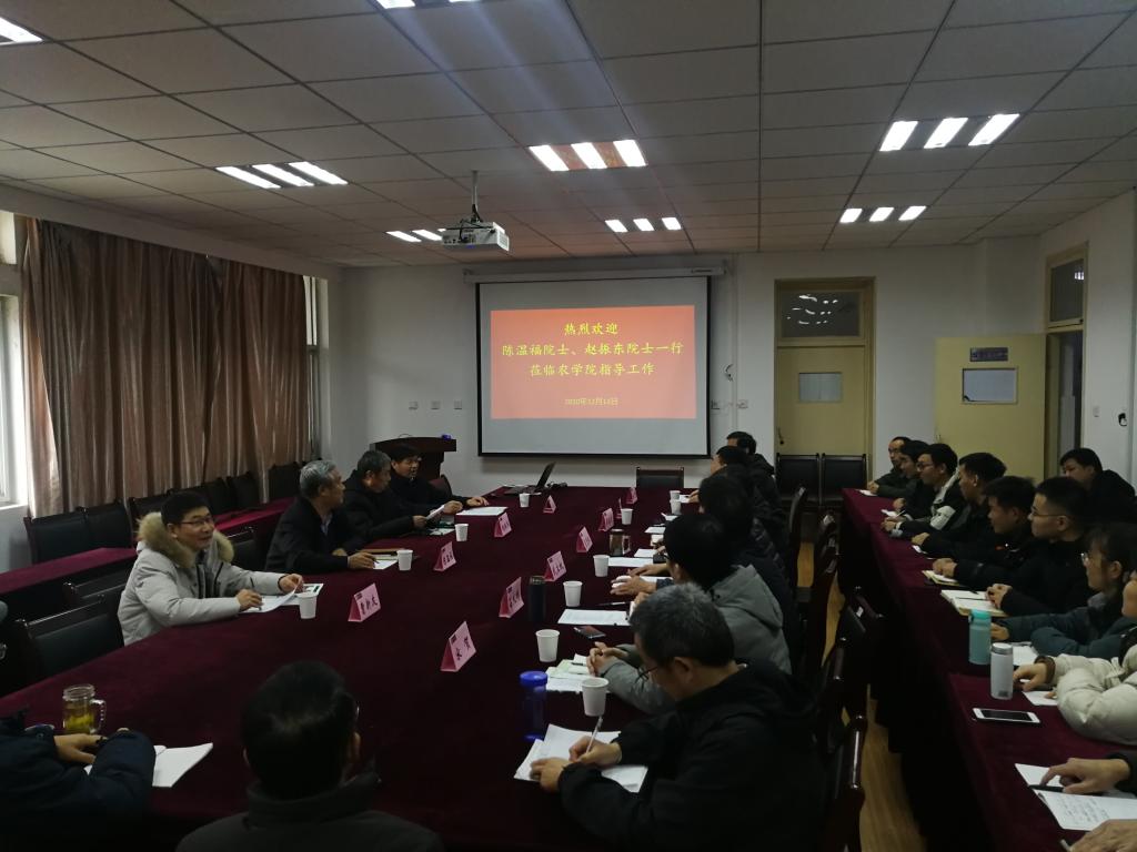 本网讯 12月13日下午,中国工程院陈温福院士、中国工程院赵振东院士、山东省农科院作物研究所曹新友研究员一行3人应邀和3044永利师生交流座谈。座谈会于3044永利十教518会议室举行。公司常务副董事长马传喜,科技处处长武立权,农公司党委书记管志权,经理李金才,公司党委副书记吕大鹏,系主任王晓波、宋贺、杨烈及全院专业课教师参加了座谈交流。座谈会由经理李金才主持。