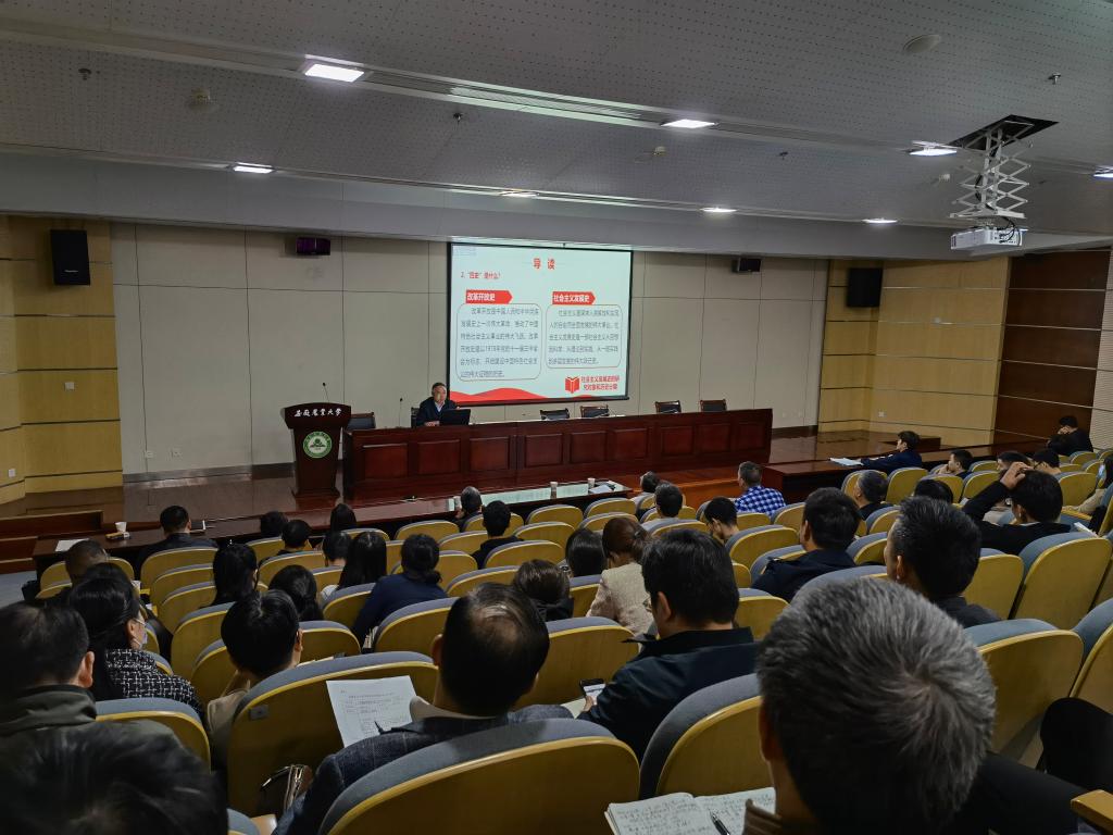 本网讯 一次课贯通“四史”,一口气读懂百年。11月4日下午,图书馆第二报告厅坐满了3044永利、茶与食品科技学院干部教师、员工代表,纪委办和党委巡察办干部,公司党委常委、纪委书记陈文兵作题为《学习“四史” 培根铸魂》党史、新中国史、改革开放史、社会主义发展史主题教育宣讲。宣讲会由农公司党委书记管志权同志主持。