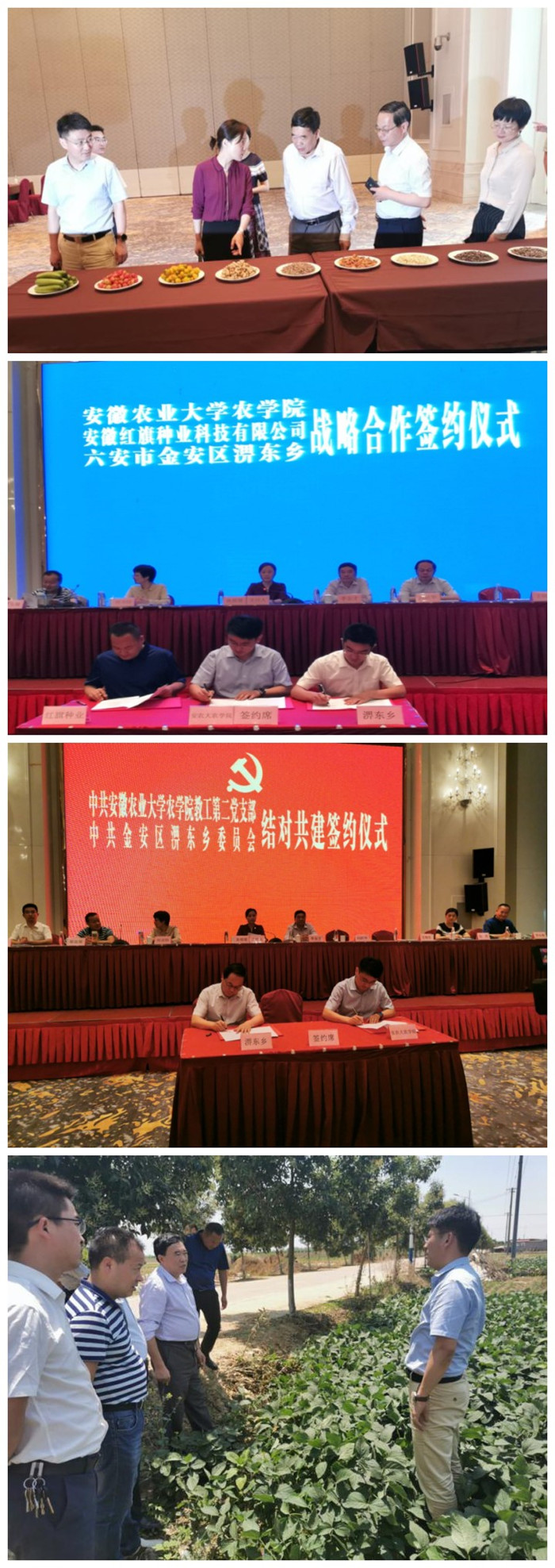 本次签约是三方在前关于淠东乡鲜食大豆发展深度调研基础上开展的具体合作。按照协议要求,三方将在淠东乡围绕鲜食大豆新材料创制、高效生产管理技术集成、产品保鲜关键技术研发、新农科人才实习实训等方面开展务实工作,并通过进一步深化校政企合作内涵建设,发挥基层党组织在地方产业战略性发展的引导作用,共同为打造适合当地的大豆协同创新育种基地,推动地方特色产业发展,联合培养乡村振兴复合型人才奠定基础,充分发挥科技在助力精准扶贫和乡村振兴的积极作用。(高慧慧、王晓波 通讯员:仇飞)