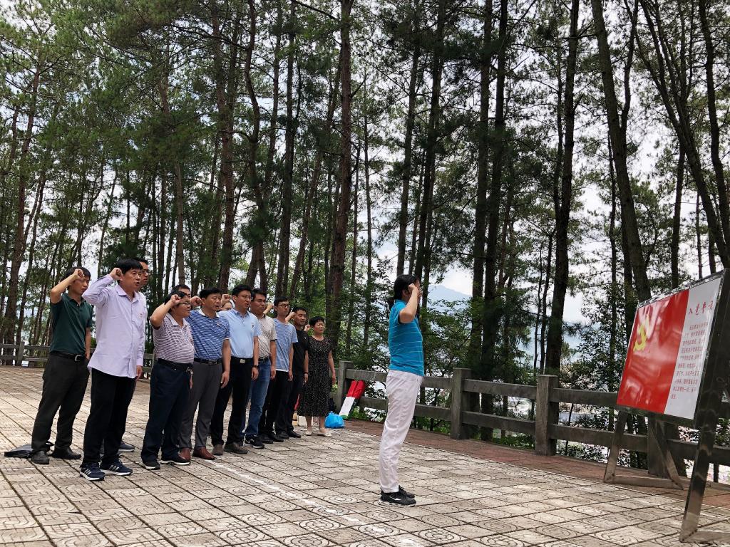 紧接着全体党员到达安徽省爱国主义教育基地大别山烈士陵园,这里是著名革命根据地之一。到达大别山烈士陵园,党员们首先在朱德元帅亲自题字的纪念碑前,三鞠躬,缅怀英烈,又在党旗前重温中国共产党入党誓词。