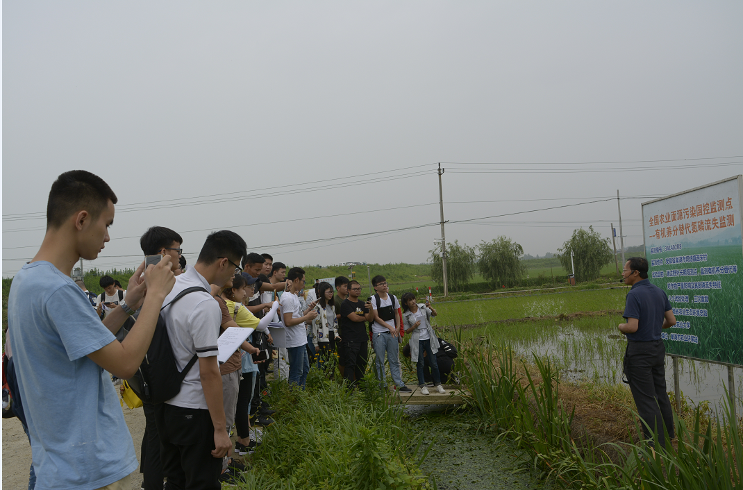 在巢湖烔炀农业面源污染综合防治示范区,巢湖市农委李立胜主任介绍了示范区建设主要做法及成效,巢湖市农委生态站徐站长详细讲解示范区农业面源污染防治的源头减量、过程控制、生态拦截和氮磷流失监测研究等情况,带领同学们参观示范区粮经轮作、稻渔共作等生态模式、互联网+农业示范基地、农业面源污染控制长期定位试验基地等。在结束巢湖烔炀农业综合防治示范区实习后,同学们驱车来到位于巢湖之滨的岸上草原,就岸上草原的土地利用与生态修复等进行现场参观与研讨。这次《农业生态学》教学实习主题突出、特色鲜明,彰显了现代农业绿色发展、循环发展、低碳发展的具有巨大魅力和广阔前景,同学们走进农田、回归大自然,生动的现场教学和宝贵的自己动手实践体验,受益匪浅,加深了同学们对农业生态知识的理解,实现了理论与实践共同提升的目的。