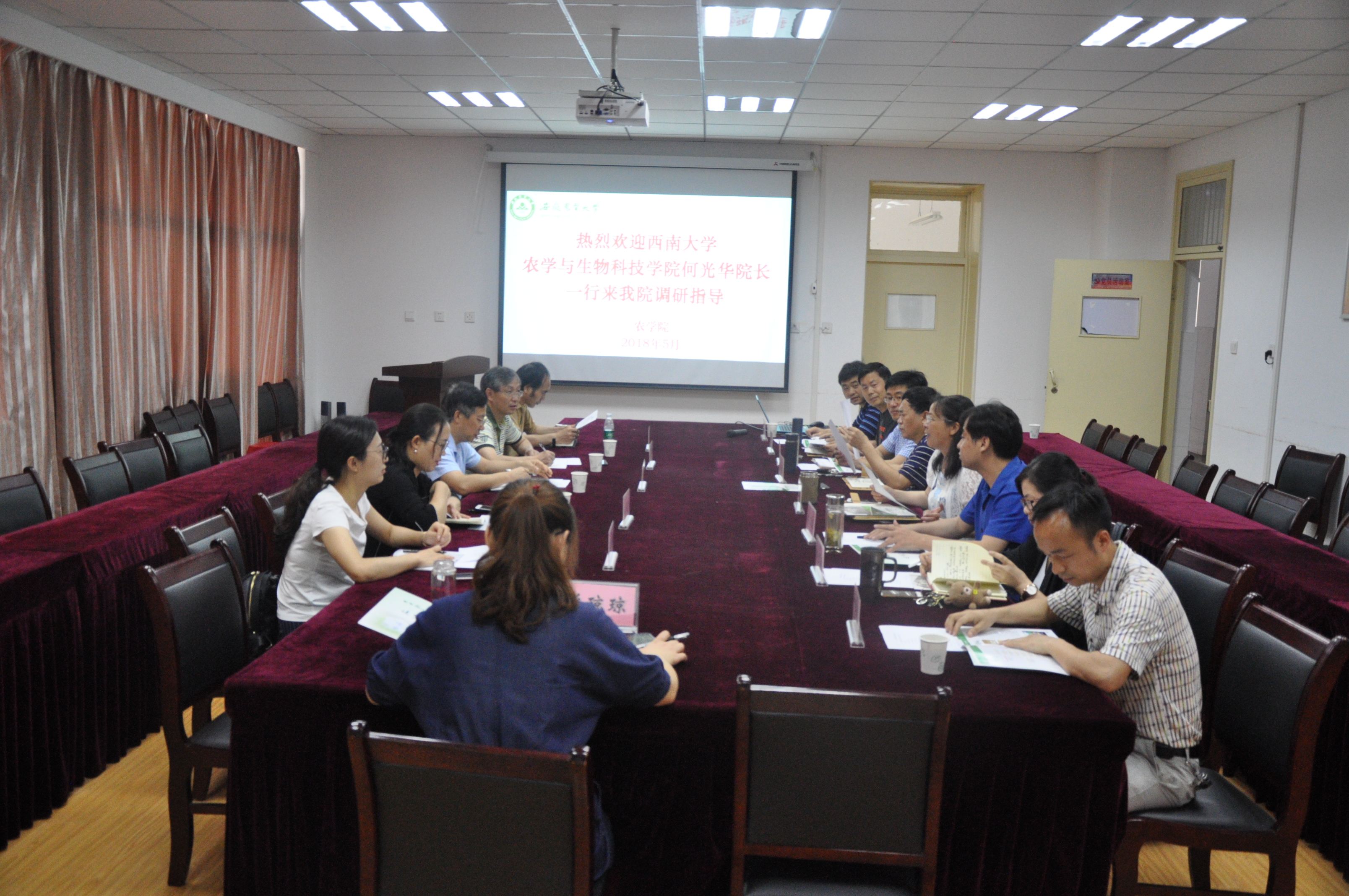 本网讯 5月17日,西南大学农学与生物科技学院经理何光华一行5人到公司进行考察交流。在十教518室,公司党政领导、系部主任及办公室人员与何光华一行进行了座谈交流。