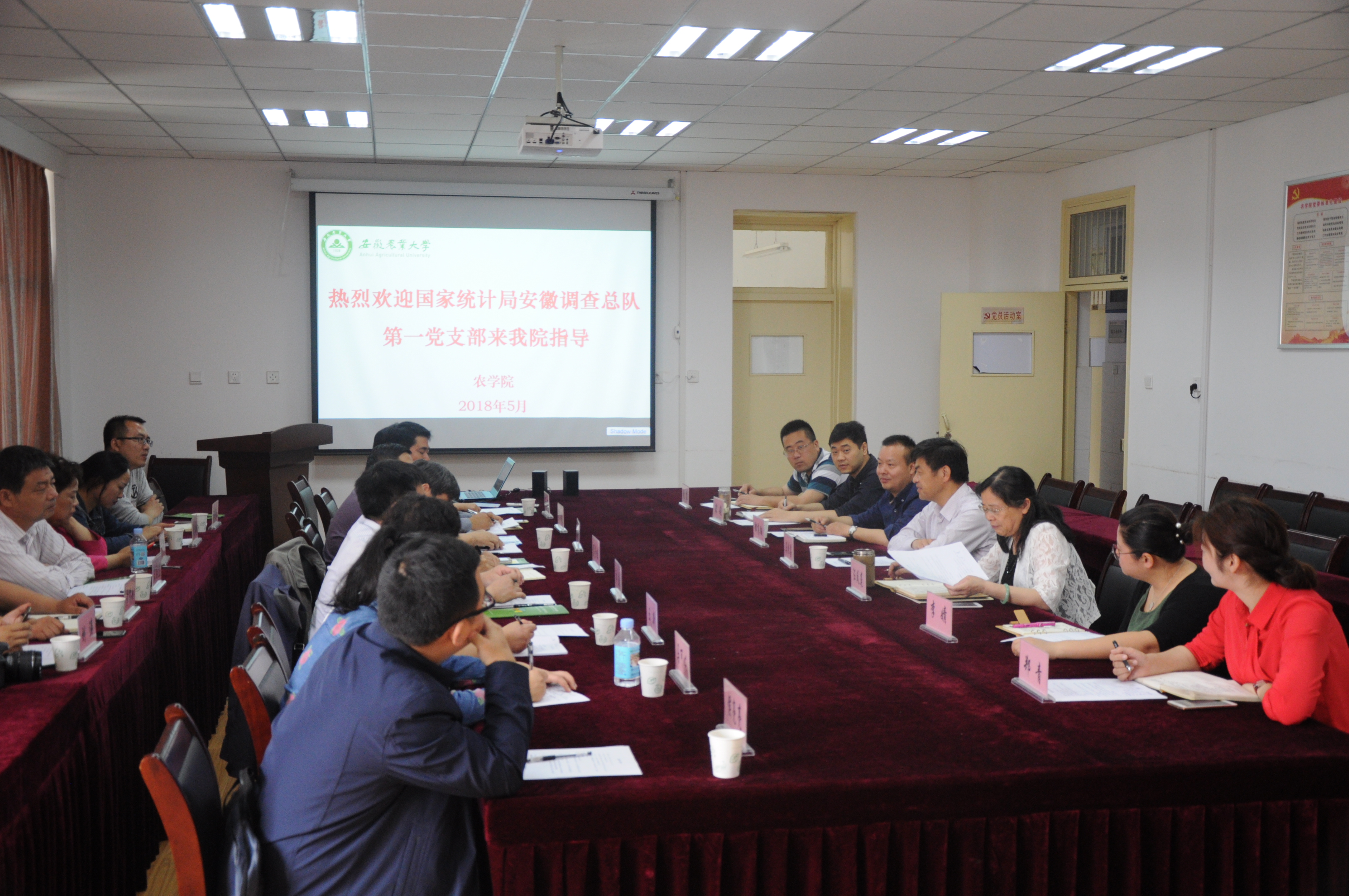 参观结束后,国家统计局安徽调查总队第一党支部成员与农公司党政领导召开座谈会,双方就党建工作做了深入交流探讨,并观看现代青年农场主人才培养视频。