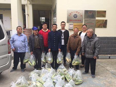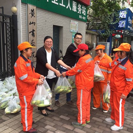 院员工第一党支部的几名员工在支部书记李婧老师带领下,将青年农场主实验班员工自己种植的新鲜玉米送给大杨镇敬老院的五保户老人和庐阳区的环卫工人们品尝。在大杨镇“乐年长者之家”敬老院,老人们收到员工们送来的新鲜玉米,眼含笑意,“感谢这些孩子能想到我们老年人,玉米很新鲜,我们要好好尝尝。”得知是老员工们创业亲手栽种的玉米,老人们更十分开心并且鼓励他们继续努力。在庐阳区永红路社区环卫工人服务站,送去的玉米也同样的得到了环卫工人们的欢迎和喜爱。