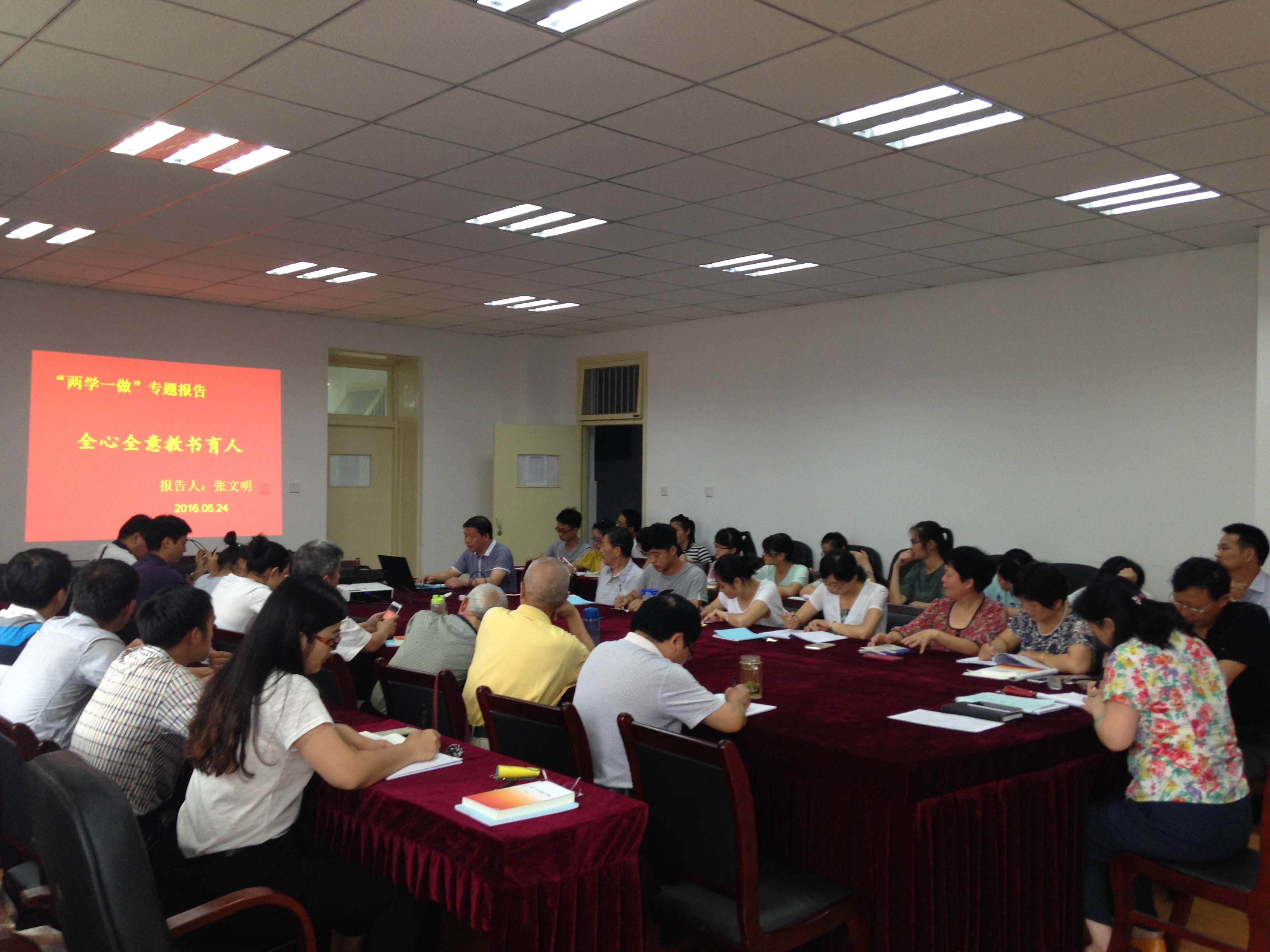 张文明从进一步了解“全心全意为人民服务”、进一步理解“全心全意为人民服务”和党员教师要做到全心全意教书育人三个部分,结合自身30多年地从教经历,讲述了教书育人感受体验、“两学一做”实践思考,给学院老师提供了宝贵的经验。