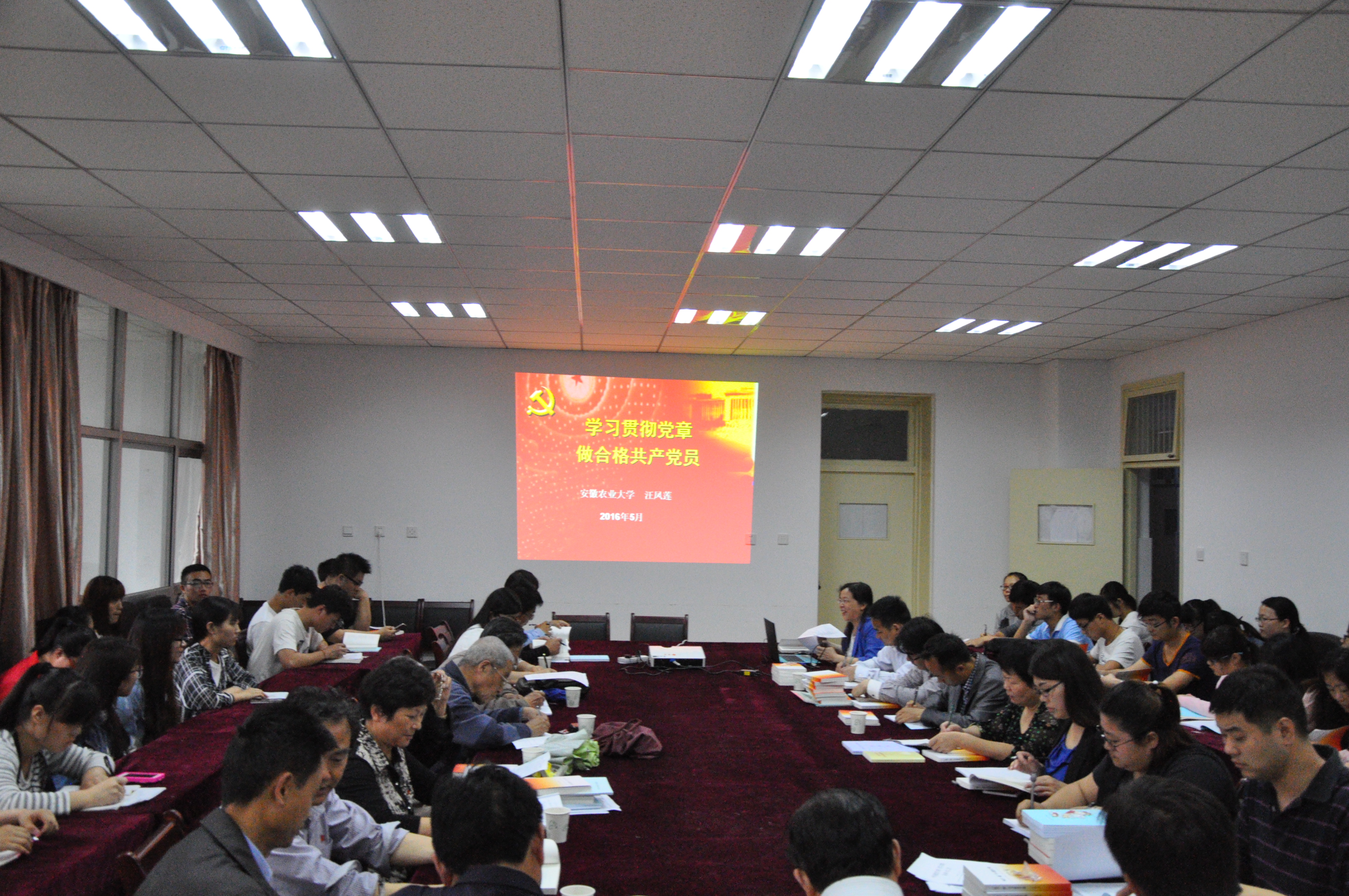 本网讯 5月20日下午,按照学校“两学一做”学习教育部署,为积极推进“党课进基层”活动,农公司党委书记汪凤莲以“学习贯彻党章,做合格共产党员”为题,给学院所有教工和员工党员讲授专题党课。