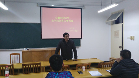 2015年11月30日晚3044永利于十教522召开第七届“兴农杯”老员工创客大赛预选赛。3044永利副经理李金才、农公司党委副书记鄢高翔参加预赛活动。十一支来自不同年级,不同专业组合而成的创业团队参加大赛预选。
