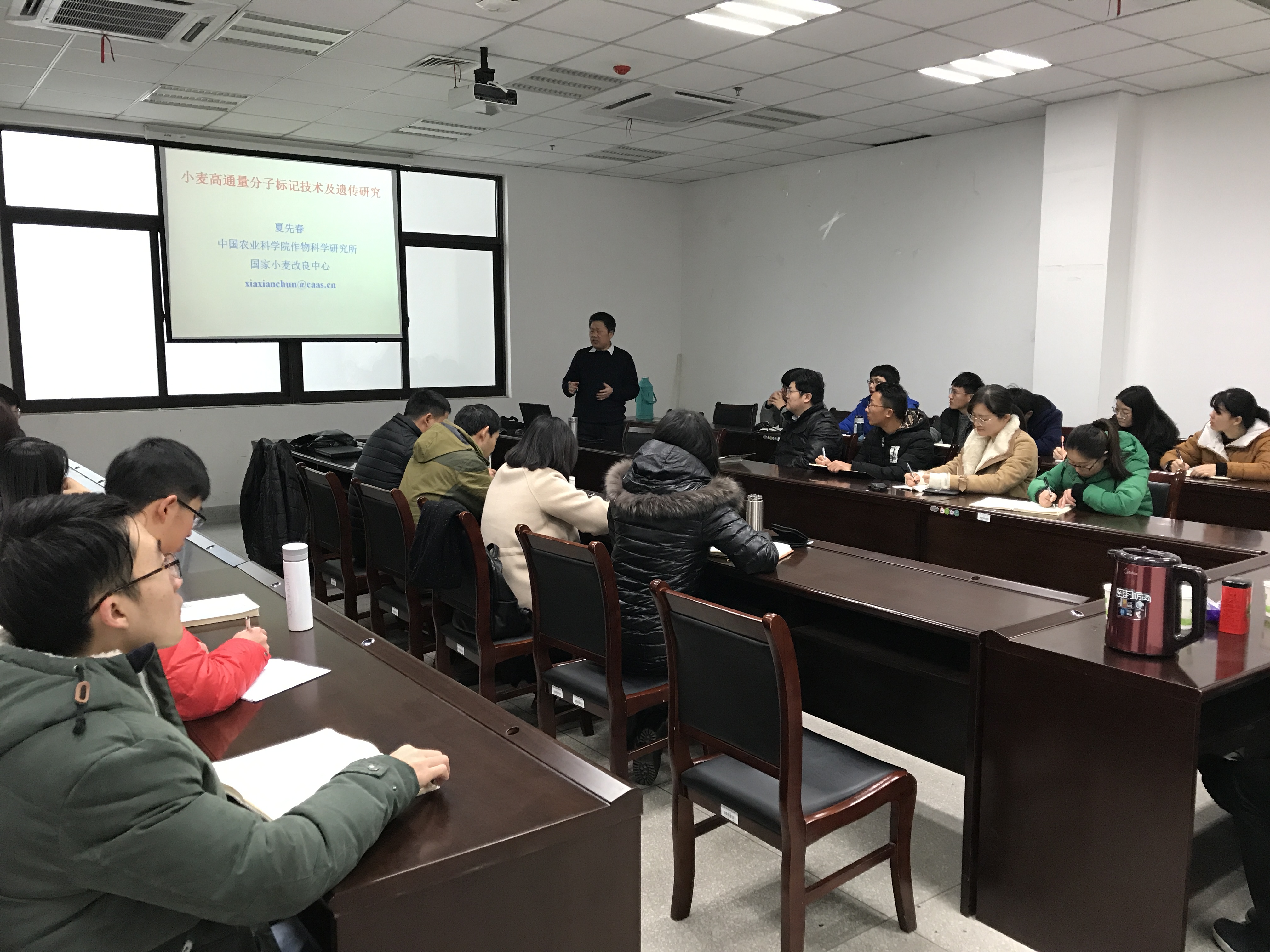 MicrosoftInternetExplorer402DocumentNotSpecified7.8 磅Normal012月29日上午,农业部黄淮南部小麦生物学与遗传育种重点实验室、安徽省粮食作物协同创新中心联合邀请中国农业科学院作物科学研究所夏先春研究员到学院进行学术访问和交流,并做了“小麦功能基因精细定位及新型分子标记开发”等重要学术报告。副经理常成教授、司红起教授、杨烈副教授、郑文寅副教授、张海萍副教授、卢杰博士、陈璨博士等老师以及相关学科研究生参加此次学术交流,报告会由3044永利常成副经理主持。期间,与会老师及研究生在新型分子标记鉴定平台、小麦抗逆、产量及品质分子改良、小麦抗赤霉病研究等多个方面与夏先春老师展开深入讨论。会上,就育种材料交流、科研合作、公司产品等方面也进行进一步沟通,取得较好的交流效果。