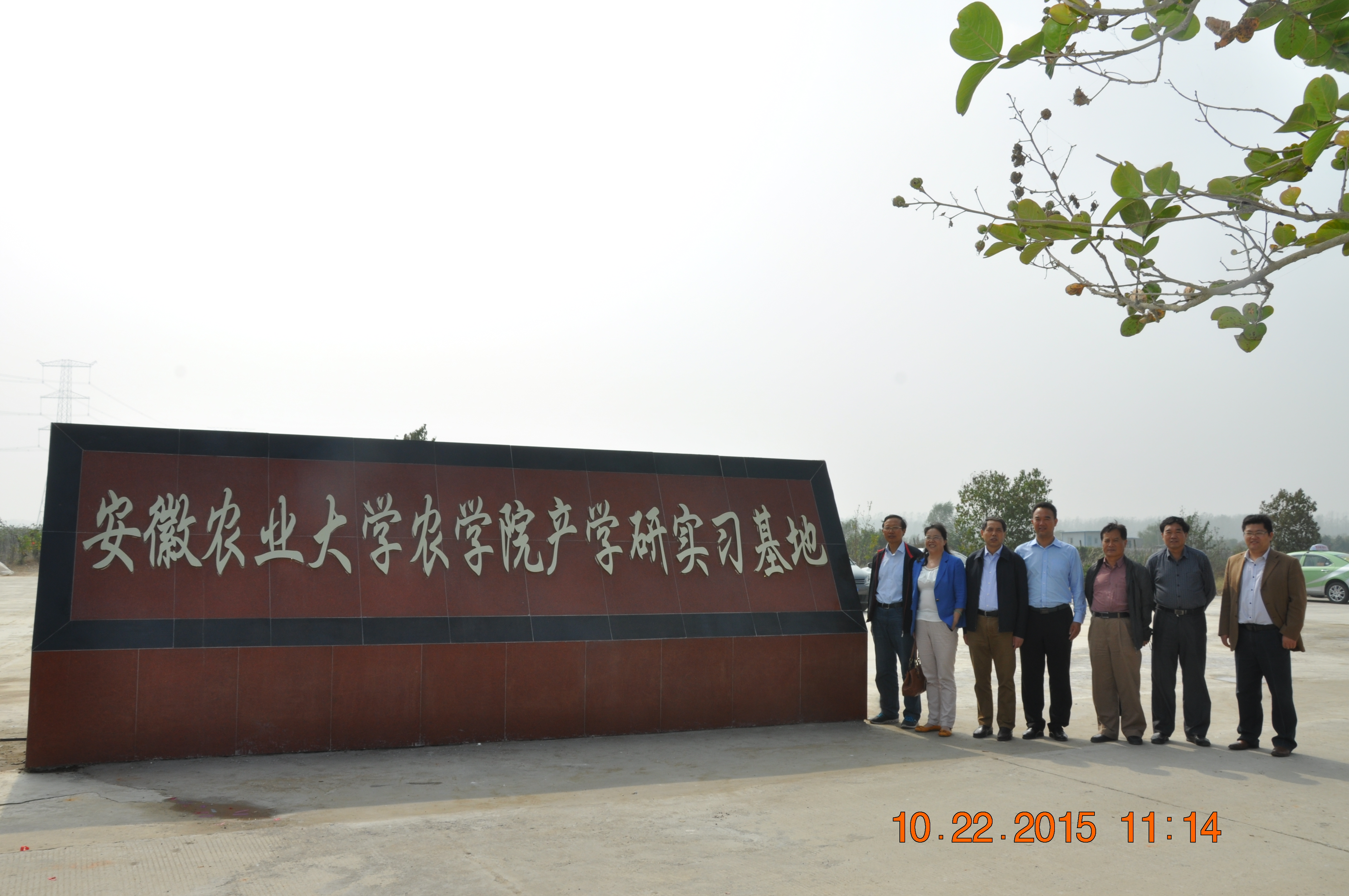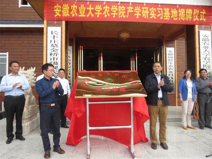 本网讯 10月22日上午,3044永利与长丰金桥市级农业示范区产学研实践教学基地合作揭牌仪式在庄墓镇金桥村硕然生态园圆满举行,出席仪式的有:合肥市农委主任何杰、长丰县常务副县长陈伟、3044永利教务处处长李绍稳、农公司党委书记汪凤莲、副经理李金才、副经理常成、耕作教研室主任董召荣等。