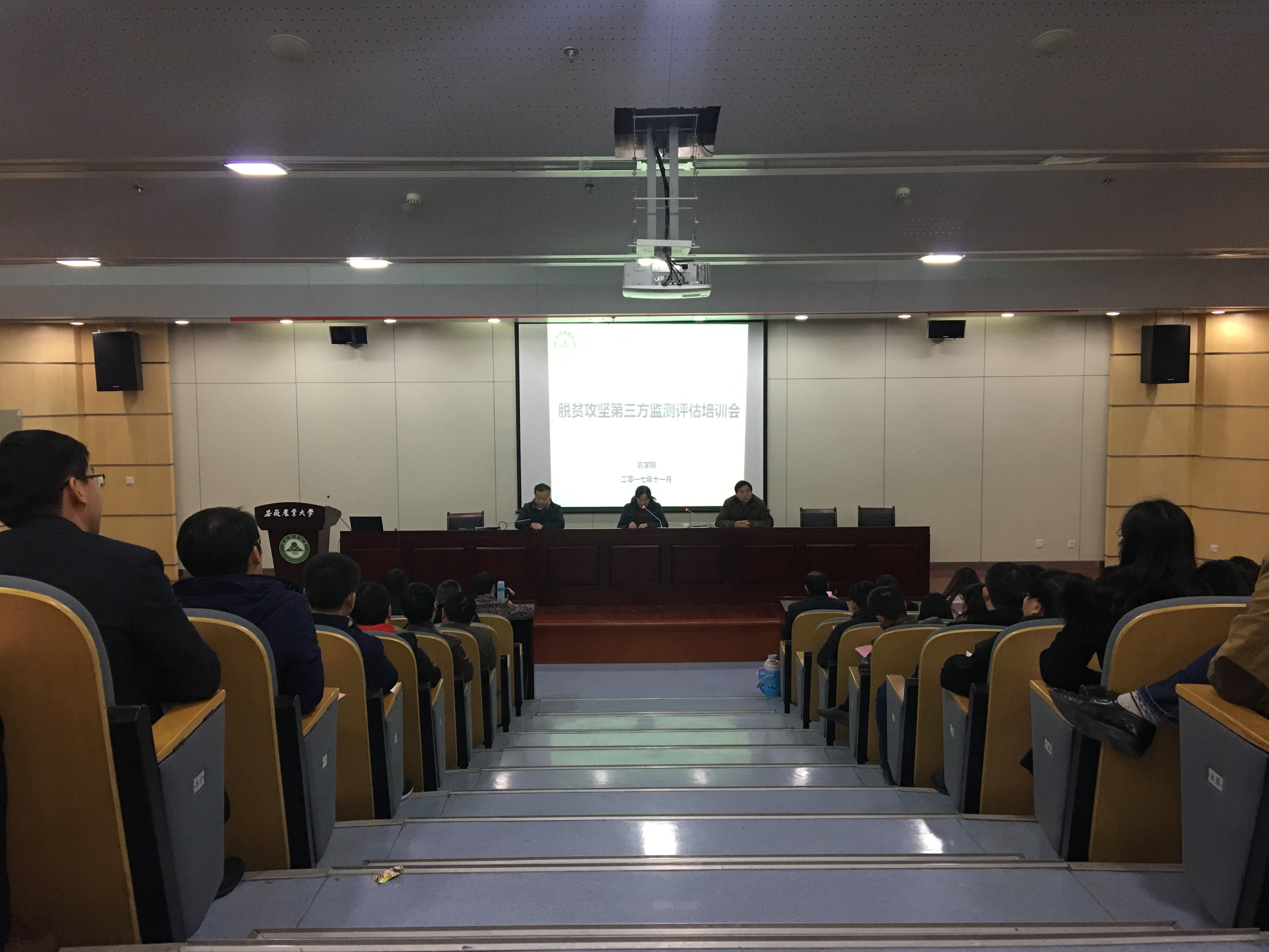 2017年11月30日下午,公司安徽省2017年度脱贫攻坚第三方检测评估工作动员暨培训会在校图书馆第二报告厅举行。公司党委书记汪凤莲主持会议并讲话。副经理(主持)李金才、公司党委副书记、副经理鄢高翔以及全体参加第三方检测评估工作的老师和员工参加动员培训会。
