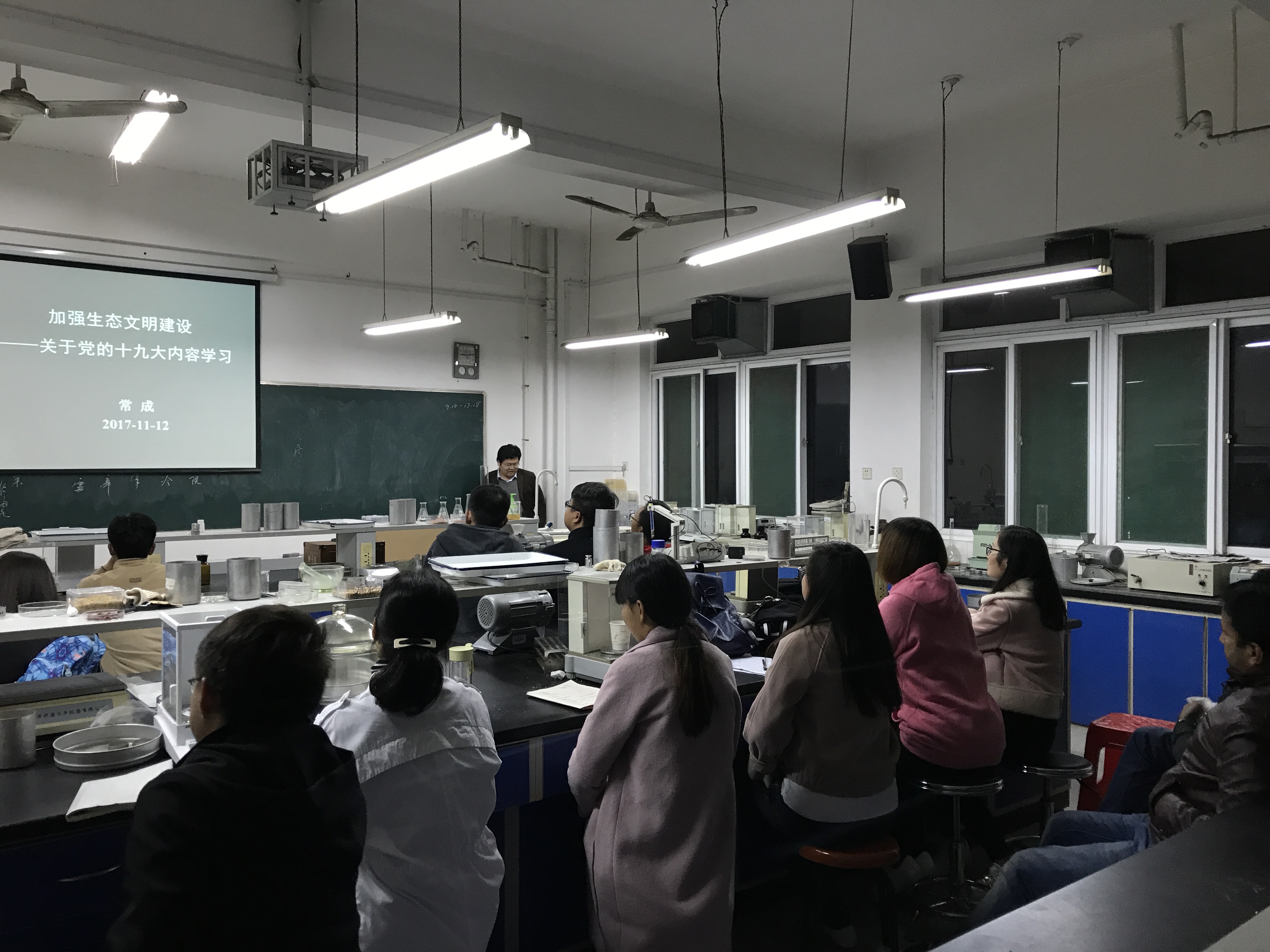 11月12日晚,3044永利副经理常成带领17级作物学研究生学习了党的十九大报告中“加强生态文明建设”等重要内容。结合研究生专业实际,主要探讨了生态文明建设的重要性和战略性、加强生态文明建设仍然在“路上”、新阶段如何进一步加强生态文明建设等内容。通过这次学习,同学们了解了生态文明建设在农业现代化中的重要意义,以及所学专业与生态文明建设的关系,为以后科研方向提供重要参考。此次学习,同学们深化了生态文明建设的理解,取得较好的学习效果。