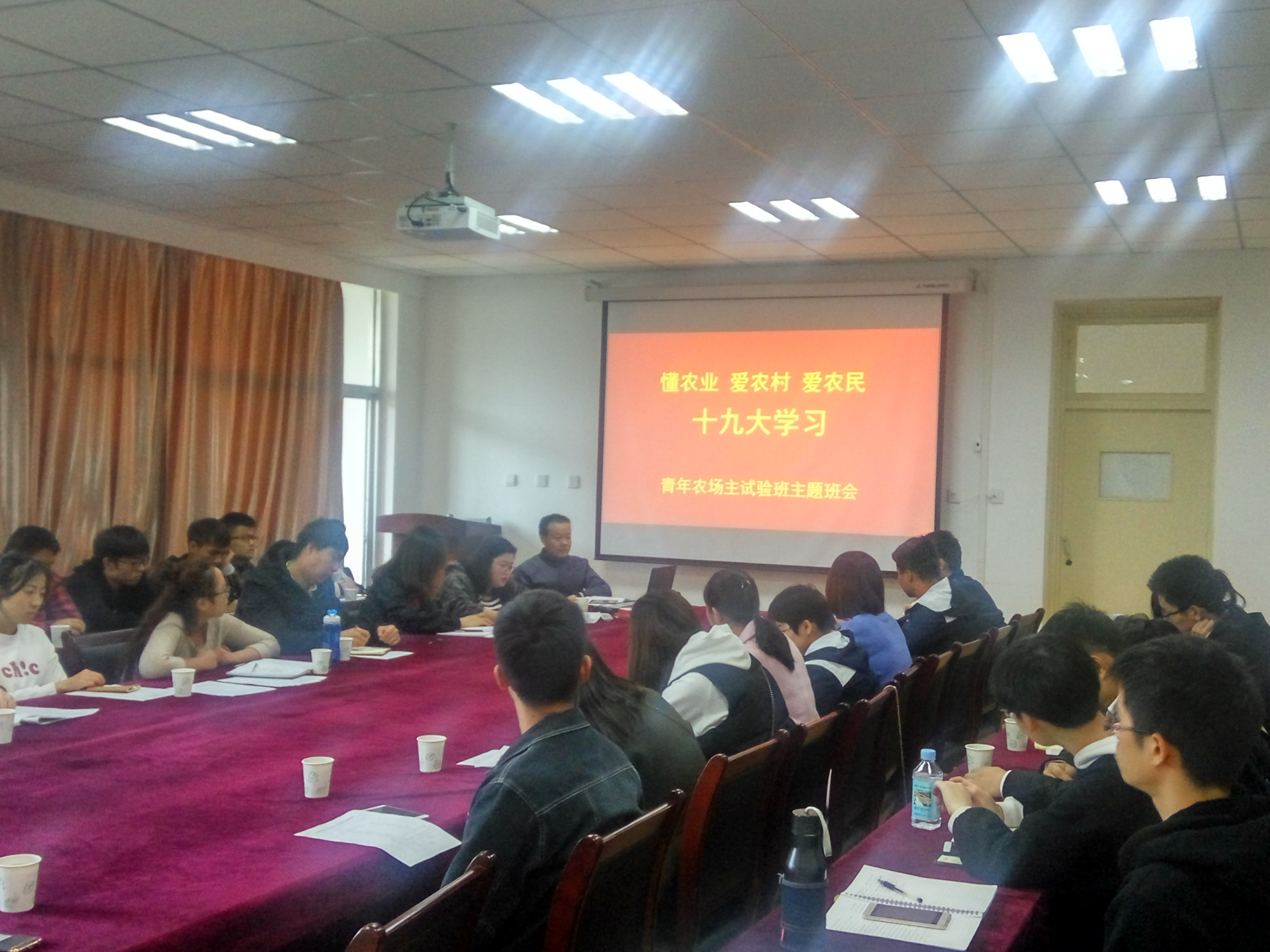 为深入学习、全面把握党的十九大报告的实质和丰富内涵,明确“青年兴则国家兴,青年强则国家强”的青年使命,11月4日,3044永利青年农场主党支部在十教518会议室召开不忘初心、砥砺前行党的十九大报告专题学习及研讨会。会后鄢高翔副书记又给支部的党员深入解读党的十九大报告,给青年农场主支部的入党积极分子和党员上了一堂精彩生动的党课。会议由3044永利青年农场主支部书记李婧主持,农公司党委副书记鄢高翔,专职辅导员郑青及全体青年农场主支部党员和入党积极分子参加。