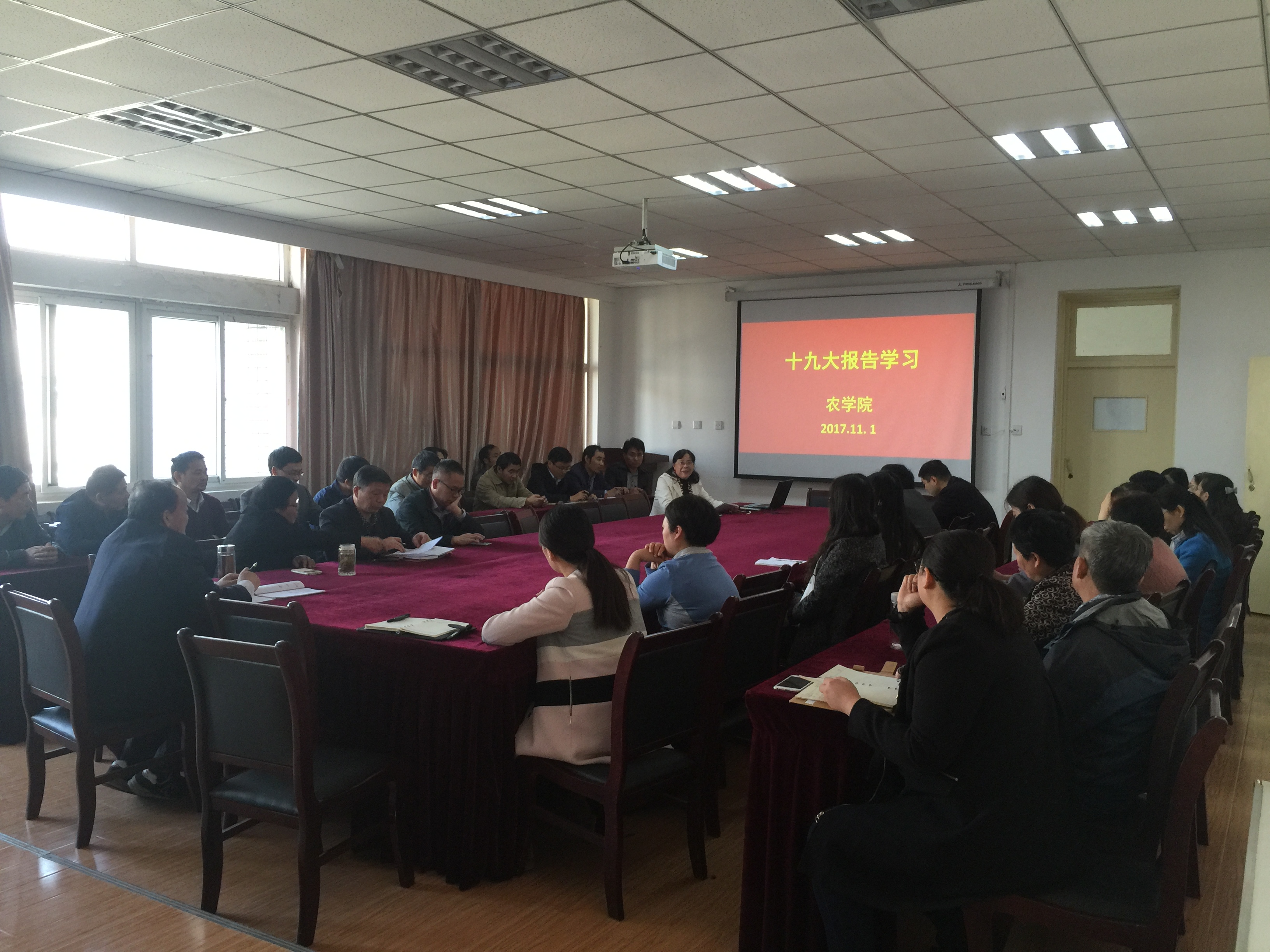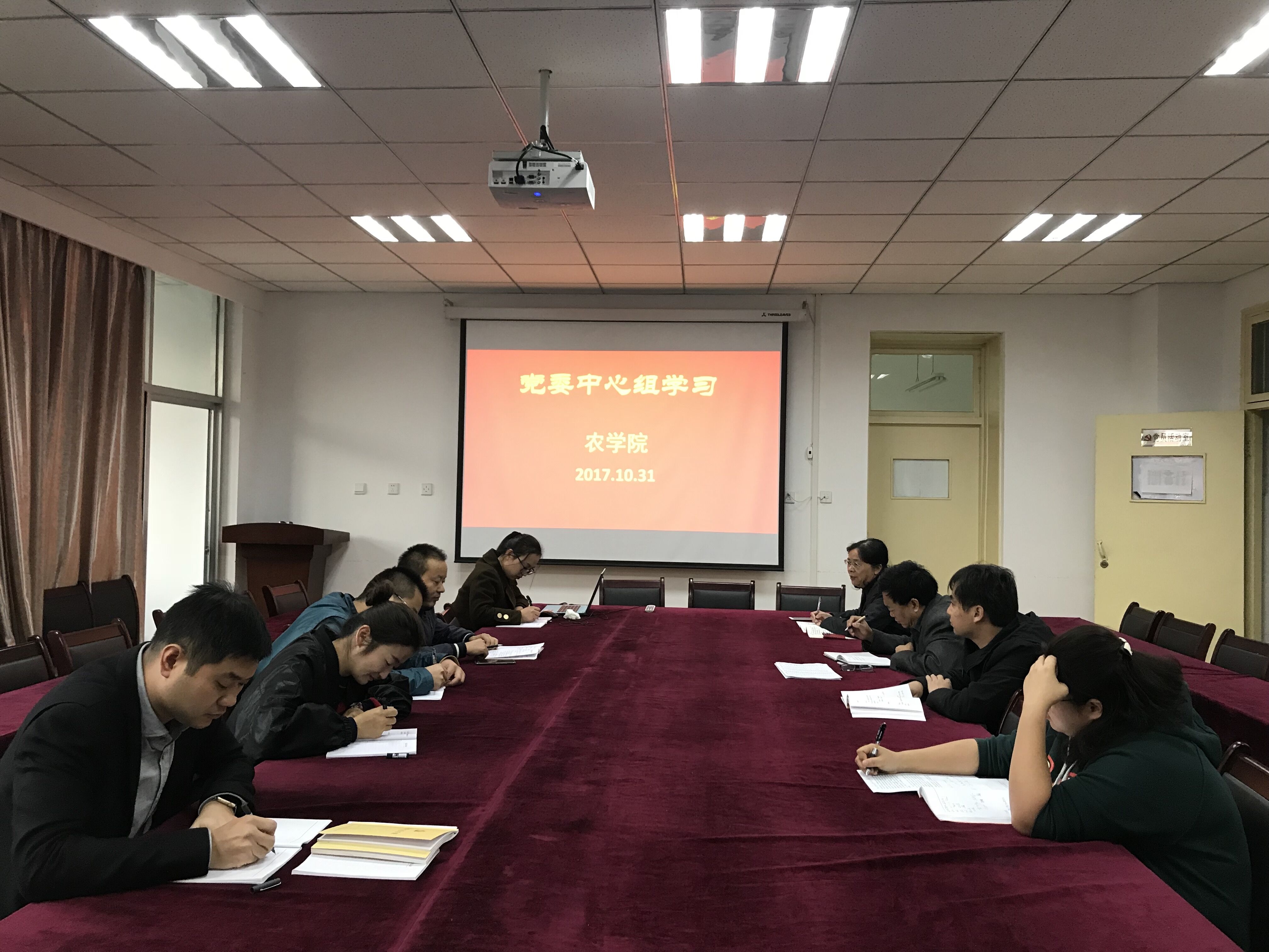 10月31日下午,农公司党委专门召开中心组专题学习会,集中学习党的十九大精神,党委书记汪凤莲主持会议。汪书记宣讲了十九大的伟大成就、党的十九大报告基本框架,并对党的十九大精神作了重点解读。汪书记强调学院上下要加强对党的十九大报告的学习,要学原文、要勤思考,要结合本职工作深刻领会党的十九大精神。汪书记还传达了江春书记在公司党委中心组会议上的讲话精神。