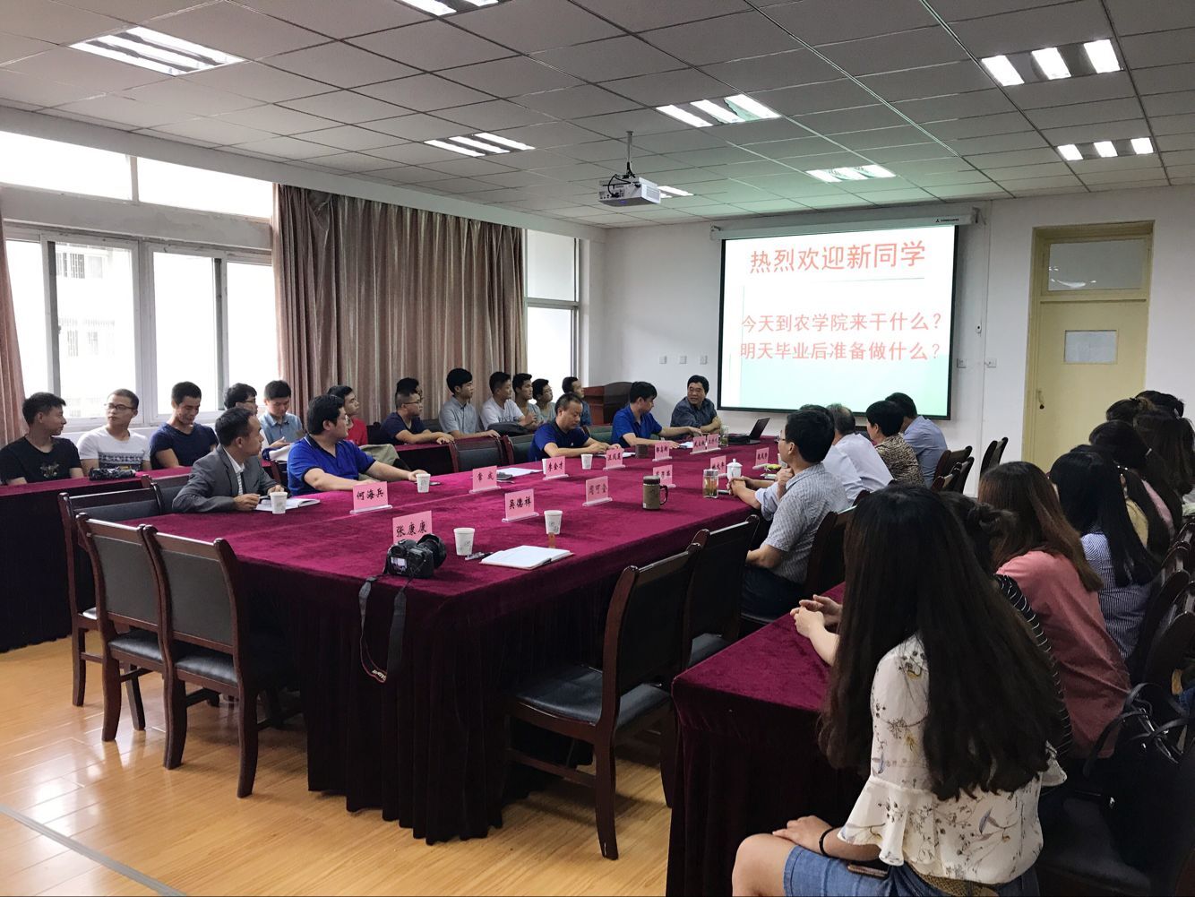 常成、武立权教授分别对作物遗传育种学和作物栽培学与耕作学的学科发展、团队、平台以及主要研究成果等方面作了介绍。导师代表姚大年教授分享了自我求学求知经验,并从不断自我提高、勇攀科学高峰、持续加强学习等方面与同学们做了分享和交流。院研究生秘书张康康老师从硕士公司产品方案、专业课程设置、奖助评审规则以及研究生日常学习工作的注意事宜等方面作了讲解。新生班主任何海兵博士以研究生学习生活转变、思想准备以及班级班委建设等方面为主题,为新生召开了第一次班会。