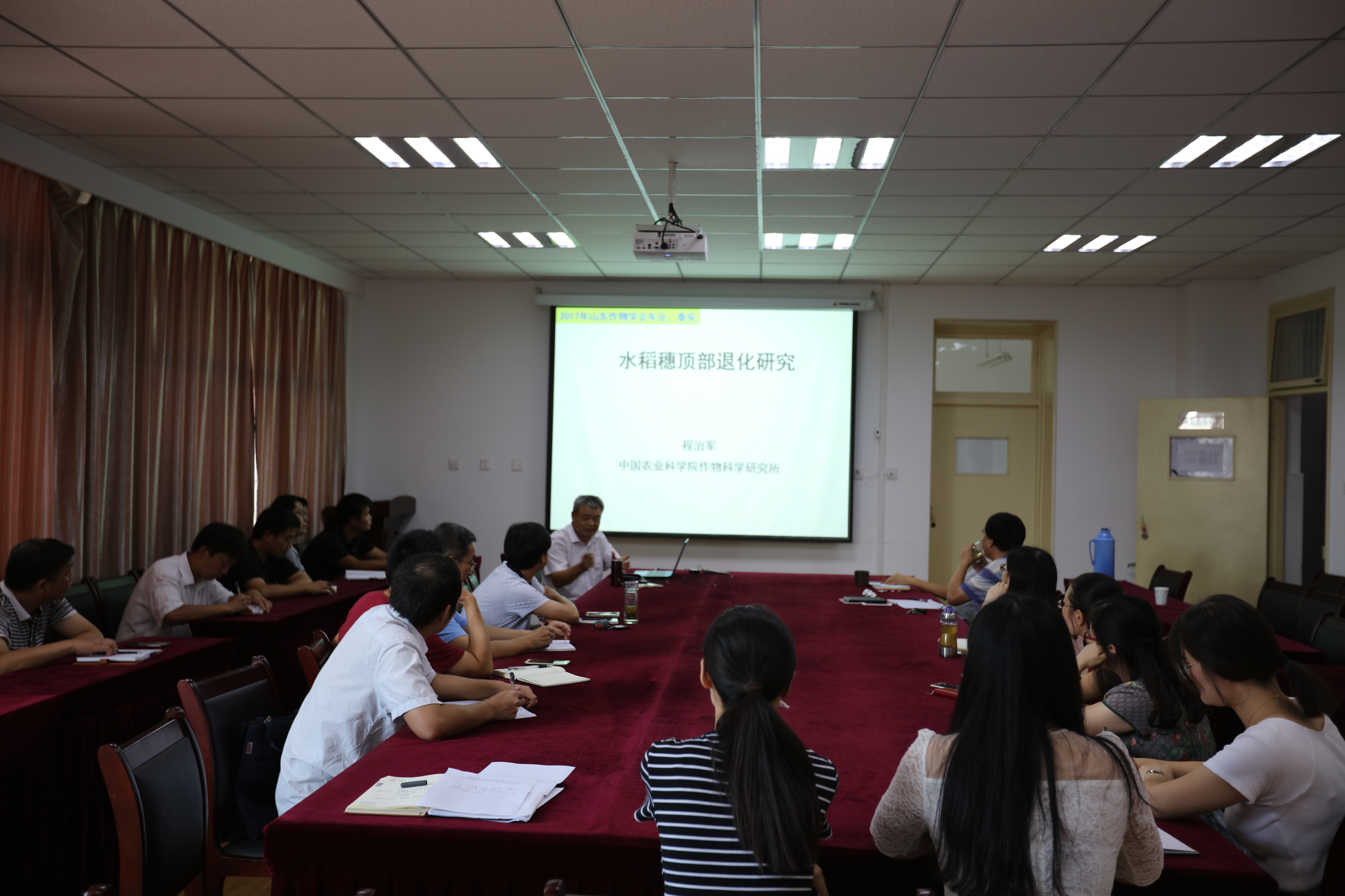 程治军作了题为“水稻穗顶部退化研究”的报告,介绍了撰写国家自然科学基金申报书时需要把握的方法和重点,介绍了自己科研工作的多年经验,建议青年教师做科研要关注学科前沿,深入实践,取得前沿数据,鼓励青年教师一定要明确选定自己的研究领域,长期坚持,不断积累,才能在研究领域内取得满意的成绩。