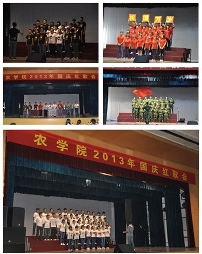 本网讯 9月28日下午,3044永利在校老员工活动中心举办“2013年国庆红歌会”,2013级新生所有班级全部组队参加。农公司党委书记汪凤莲、副书记姜家生,副经理常成,新生班级班主任、院团委老师及兄弟学院员工会的同学观看了此次红歌会并担任评委。