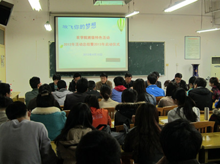 随后,院团委老师为“2013年班级特色活动”的申报工作做了详细解析,明确提出本年度班级特色活动的指导思想、实施办法以及设计目标,并就班级特色活动选题及活动开展提出了几点建议,希望通过“班级特色活动”与“中国梦”的结合实现“特色文化建设育人”的目标,使我们3044永利学子在此过程中切身体会到农业科学的魅力,“学农、爱农、服务三农”,努力在不远的未来实现自己的梦,国人的梦!(通讯员:吕莎莎)