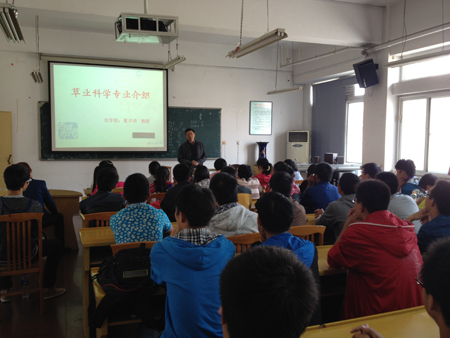 董召荣老师结合自己多年的教学、科研和实践经验就草业科学专业的学科发展、特点以及教学计划、教学目标、就业前景等给在场的同学做了详细的介绍;要求同学们树立正确的专业观念,夯实基础,尽早树立起“先就业,后择业,再创业”的观念,在实践中求发展。